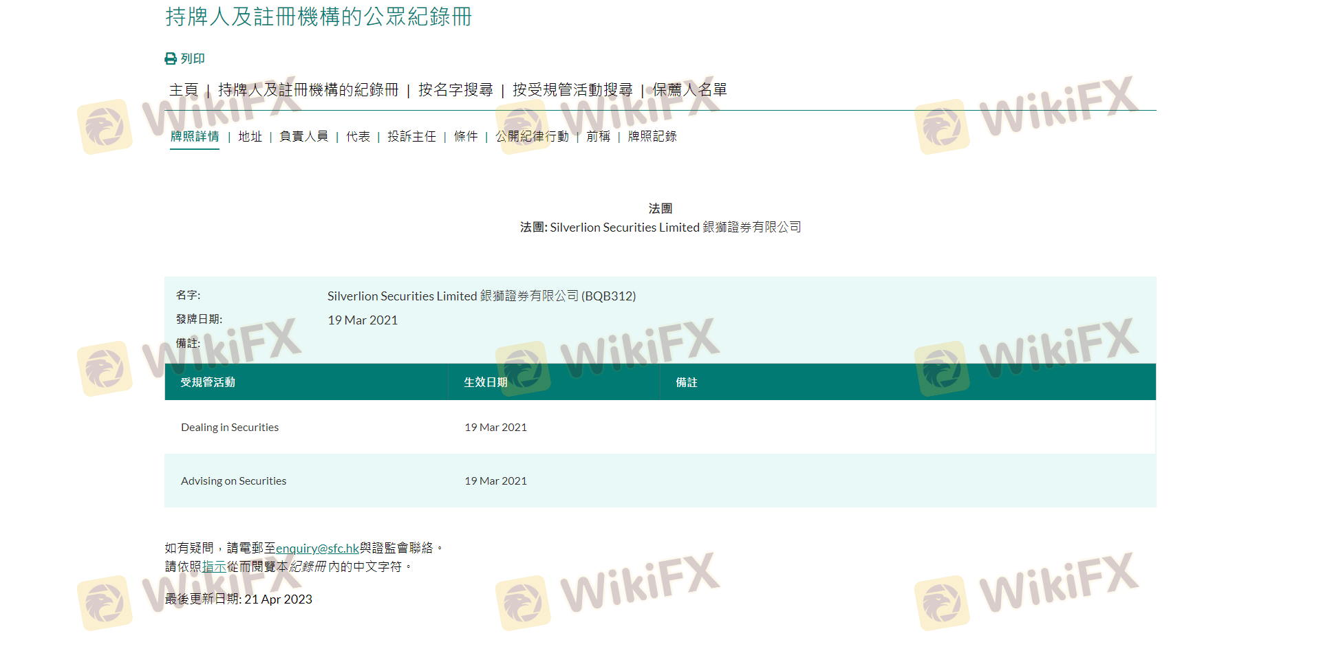 Regarding the legitimacy of Silverlion Securities forex brokers, it provides SFC and WikiBit, (also has a graphic survey regarding security).
