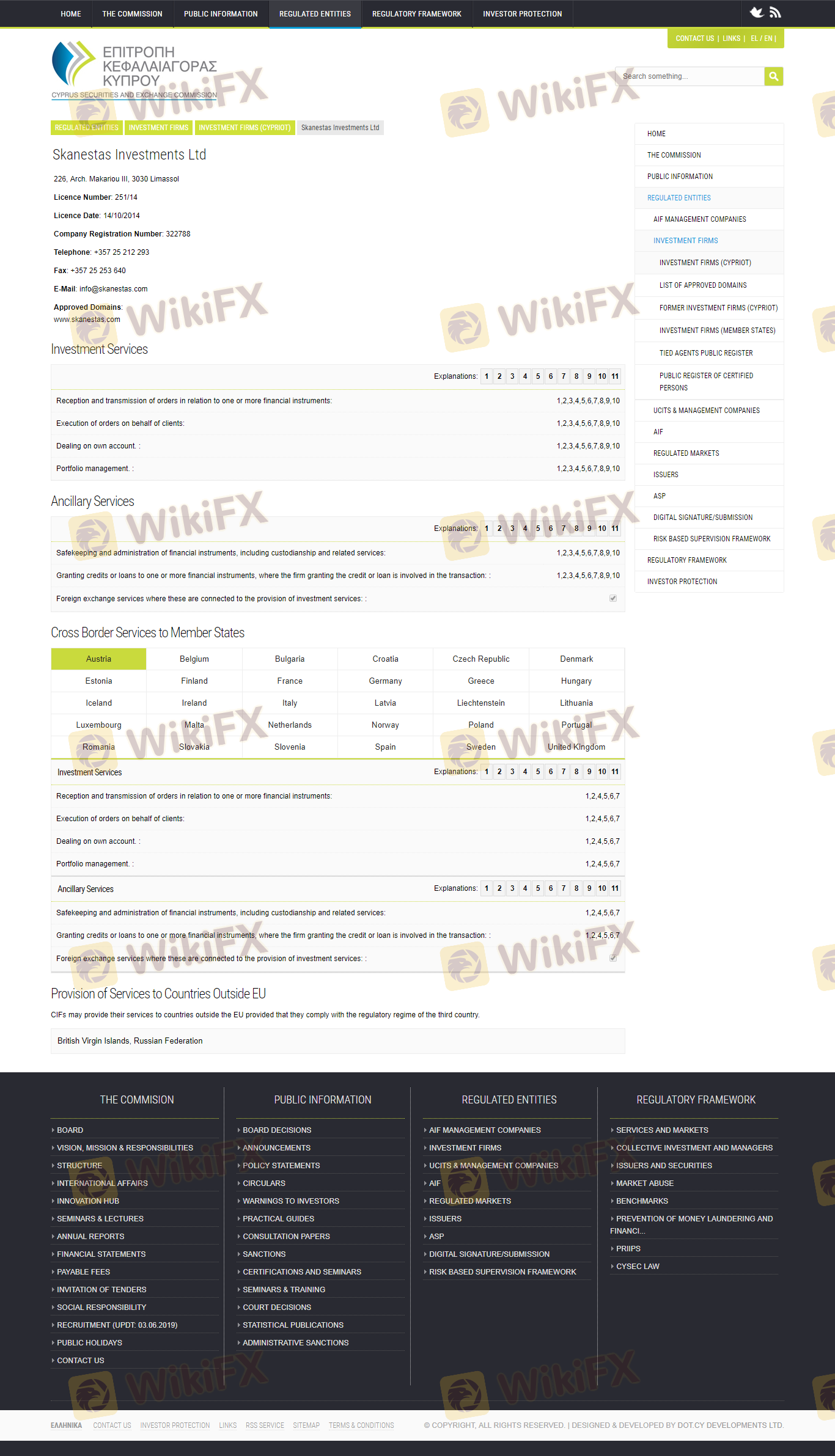 The regulatory framework surrounding a broker is crucial in determining its legitimacy. Skanestas is regulated by the Cyprus Securities and Exchange Commission (CySEC), which is known for its stringent regulatory requirements. Below is a summary of the core regulatory information for Skanestas:
