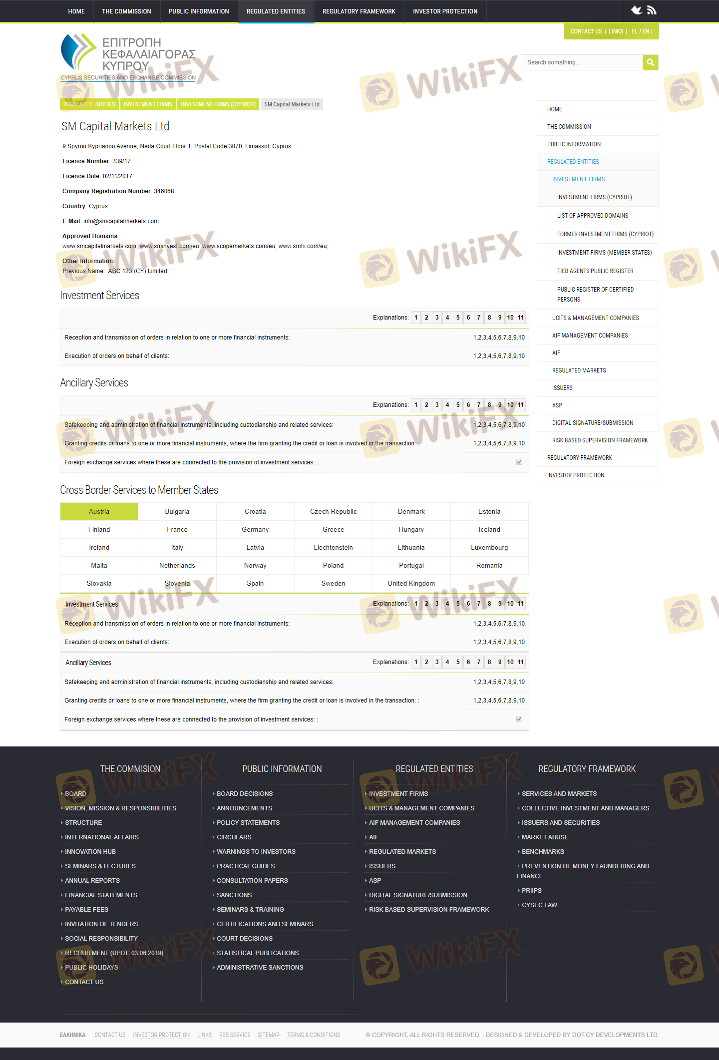 Regarding the legitimacy of SM CAPITAL MARKETS forex brokers, it provides CYSEC and WikiBit, .