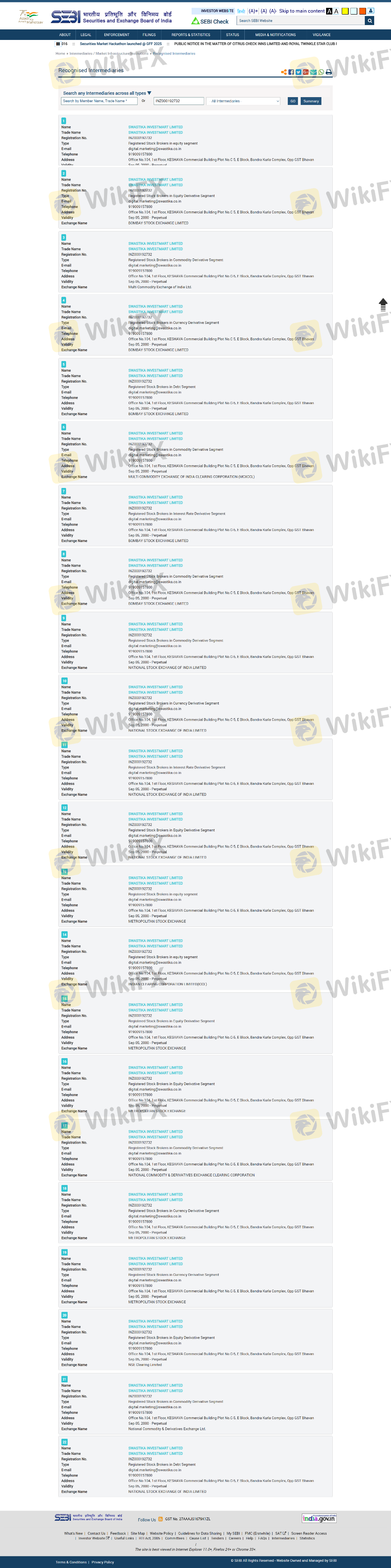 Regarding the legitimacy of Swastika Investmart forex brokers, it provides SEBI and WikiBit, .