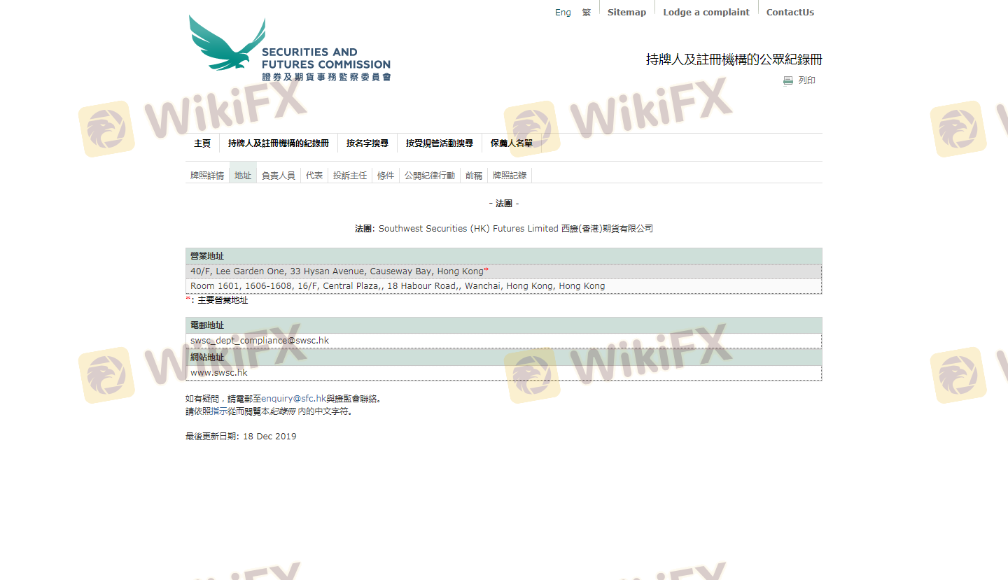 The verification status indicates that Southwest has met the basic requirements to operate within the jurisdiction. However, it is important to note that regulatory oversight varies significantly between jurisdictions. In this case, the SFC is known for its stringent regulations, which suggests that Southwest operates under a relatively secure framework. Nonetheless, the history of compliance and any past violations should also be considered. While there are no significant red flags reported against Southwest, potential traders should remain vigilant and conduct thorough due diligence.