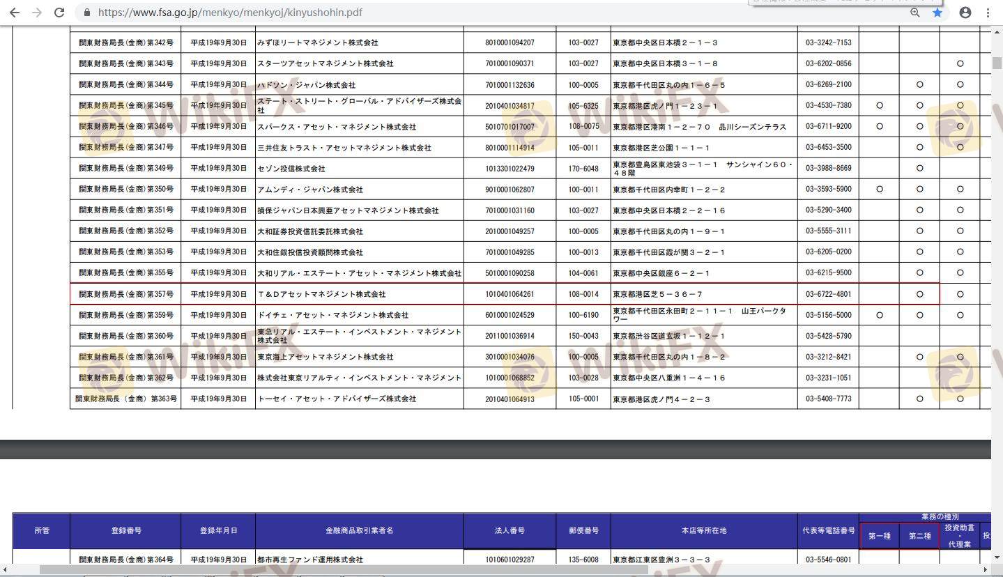 One of the primary factors in determining the safety of a forex broker is its regulatory status. A regulated broker is typically required to adhere to strict guidelines and standards set by financial authorities, which are designed to protect traders' interests. T&D is regulated by the Financial Services Agency (FSA) of Japan, a reputable authority known for its stringent regulatory framework.