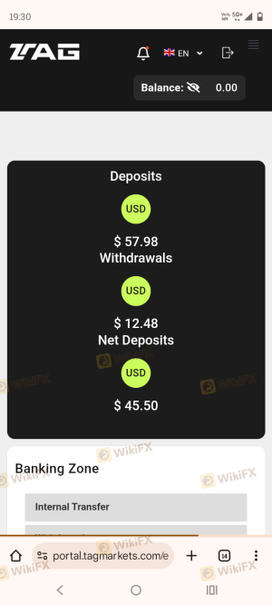The execution quality appears to be generally satisfactory, although traders should remain aware of the potential for slippage during volatile market conditions. The absence of significant complaints regarding platform manipulation further indicates that TAG is safe for traders. Nonetheless, users should be prepared for occasional execution issues, especially during high-volume trading periods.