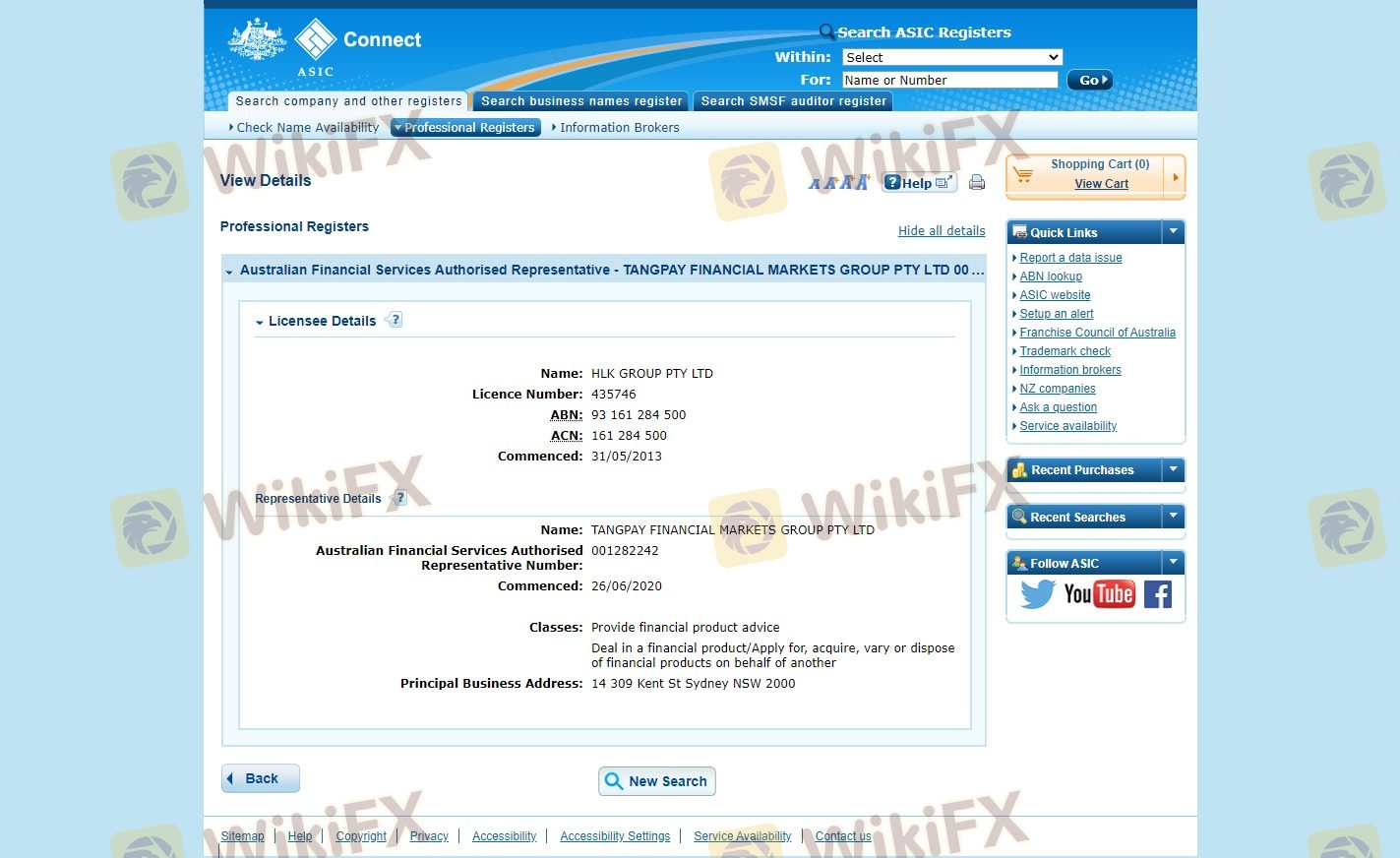 Regarding the legitimacy of Tangpay Financial Markets forex brokers, it provides ASIC and WikiBit, .