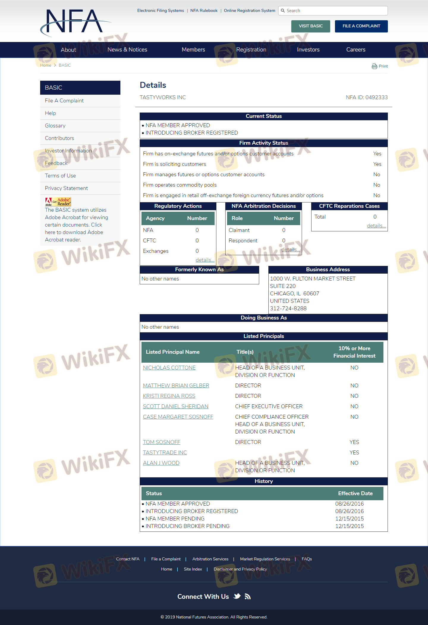 The regulatory status of a brokerage is a fundamental aspect that determines its legitimacy and the safety of clients' funds. Tastytrade operates under the supervision of several regulatory bodies, which adds a layer of protection for its clients. Below is a summary of Tastytrade's regulatory information: