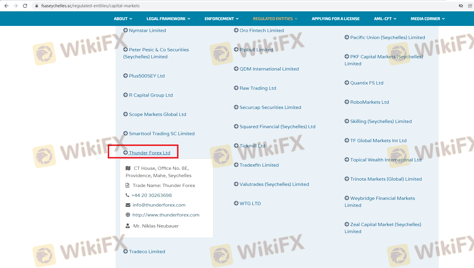 The regulatory status of a broker is paramount in determining its trustworthiness. Thunder Forex operates under the oversight of the Seychelles Financial Services Authority (FSA), which is known for its relatively lax regulatory framework. This raises questions about the protection it offers to traders. Below is a summary of the core regulatory information: