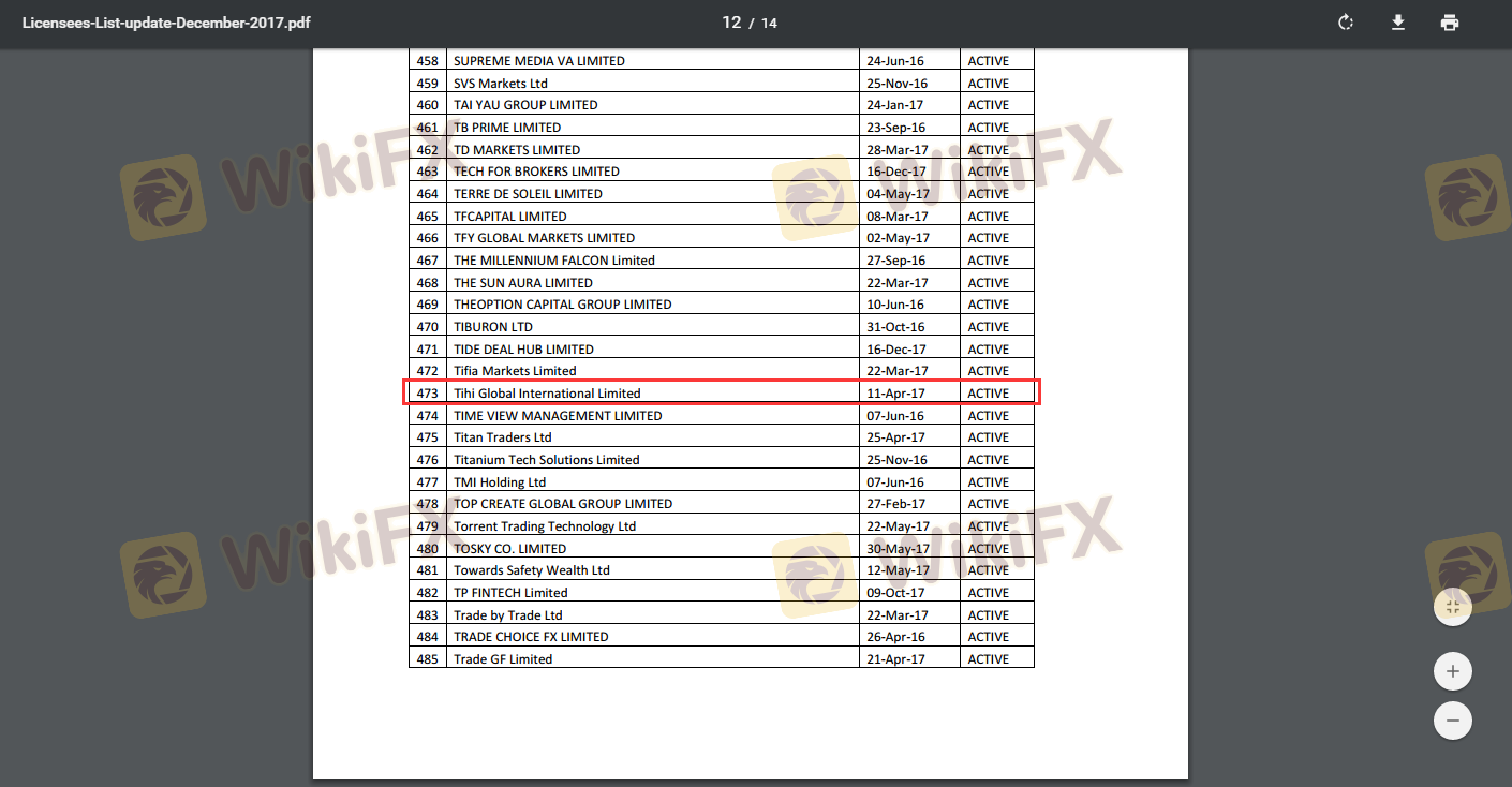 Regarding the legitimacy of TIHI GLOBA forex brokers, it provides VFSC and WikiBit, .