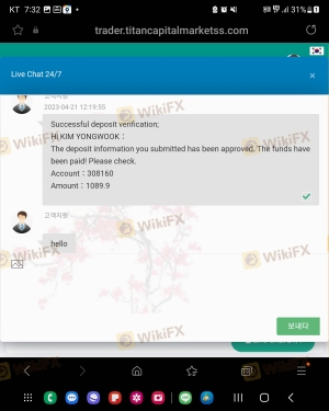Additionally, there are no indications of any platform manipulation, but the lack of transparency regarding technical performance metrics is troubling. Traders need to ensure that they are using a platform that provides efficient execution and reliable performance. Without clear evidence of these capabilities, it is reasonable to question whether TITAN is safe for trading.