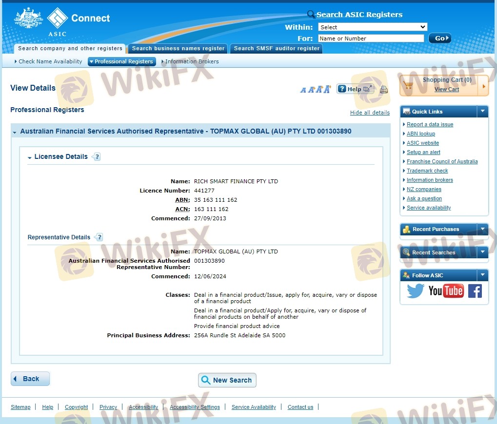 The regulatory status of a broker is crucial for ensuring the safety of client funds and adherence to ethical trading practices. TopMax Global claims to be regulated by multiple authorities, including the Financial Transactions and Reports Analysis Centre of Canada (FINTRAC), the Australian Securities and Investments Commission (ASIC), and the Financial Conduct Authority (FCA) in the UK. However, investigations reveal that these claims are misleading, as TopMax Global is not listed in the registries of these regulatory bodies.