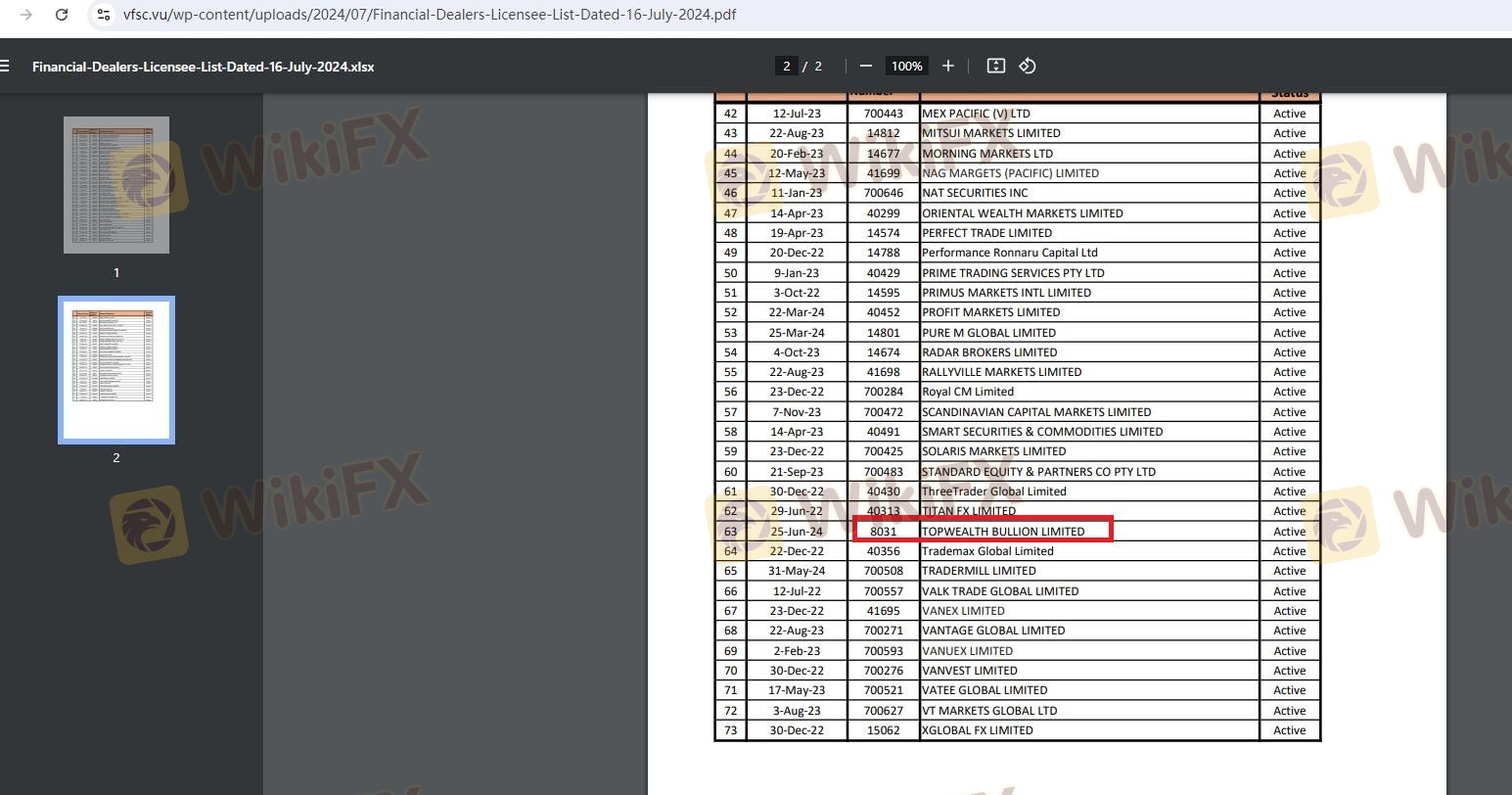 Regarding the legitimacy of TopWealth Trading forex brokers, it provides ASIC, VFSC and WikiBit, .