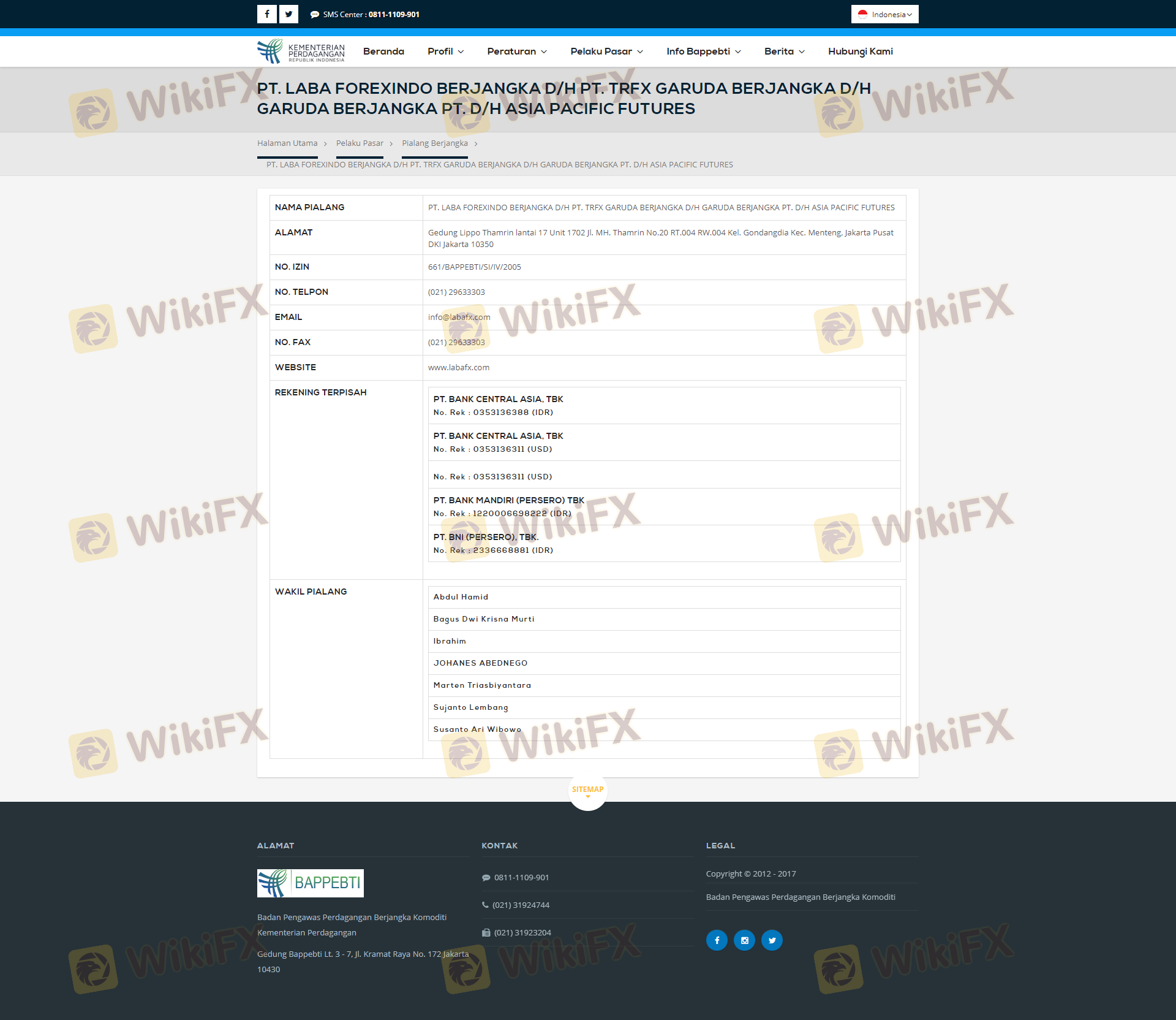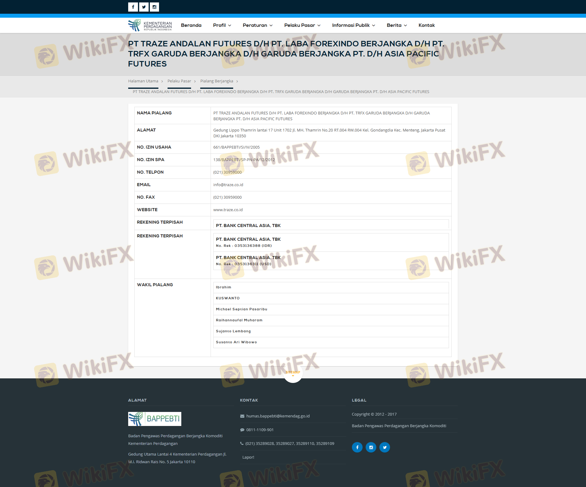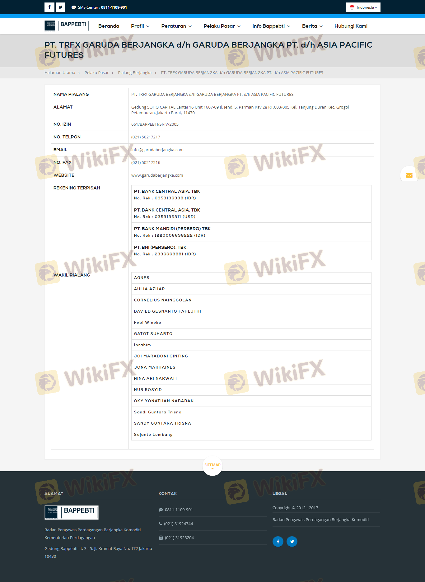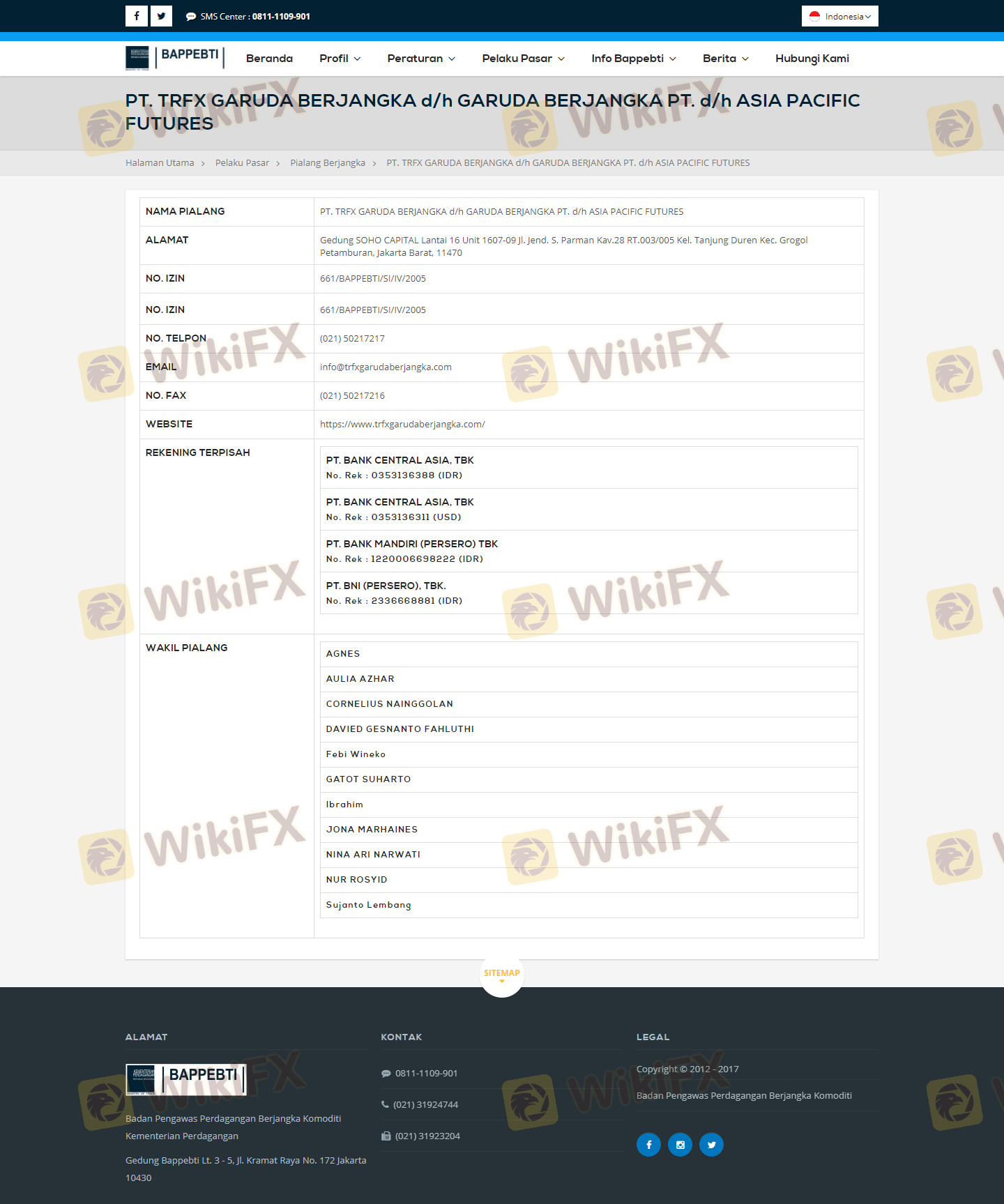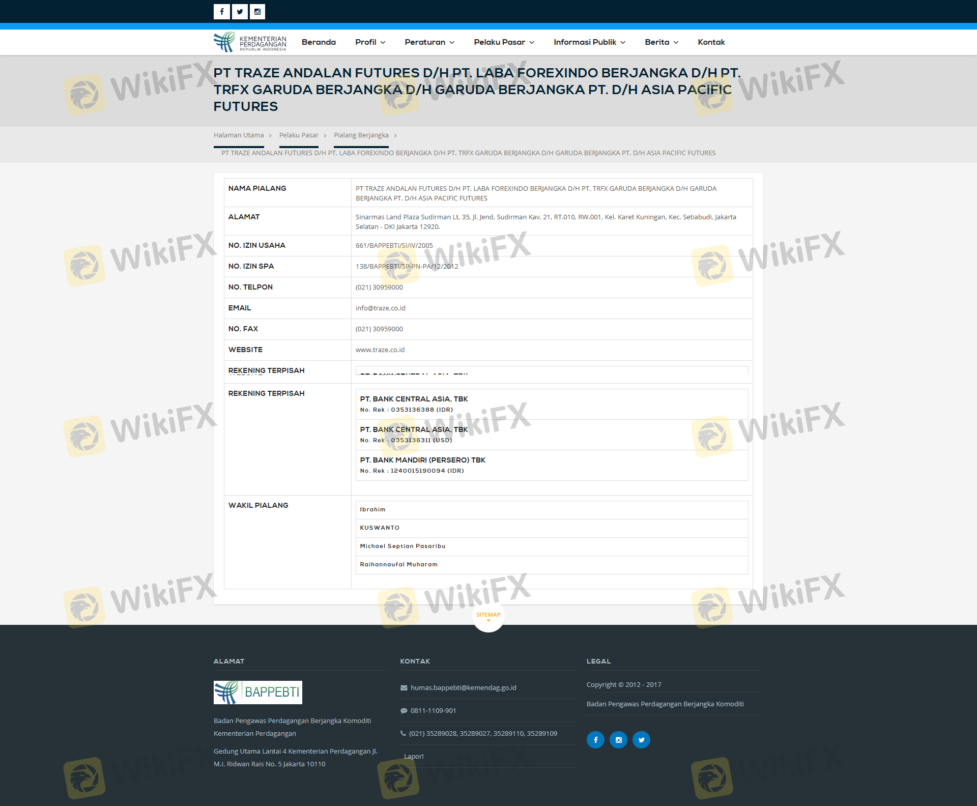 Regarding the legitimacy of TRFX Garuda Berjangka forex brokers, it provides BAPPEBTI and WikiBit, (also has a graphic survey regarding security).