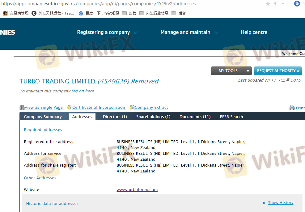 TurboForex was established in 2010 and is operated by Turbo Trading Ltd., a company whose ownership and management structure raise further concerns. The broker claims to have a presence in New Zealand; however, the transparency regarding its actual operations and ownership is limited.