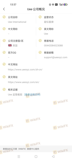 Uee latest industry rating score is 1.53, the higher the score the safer it is out of 10, the more regulatory licenses the more legitimate it is. 1.53 If the score is too low, there is a risk of being scammed, please pay attention to the choice to avoid.