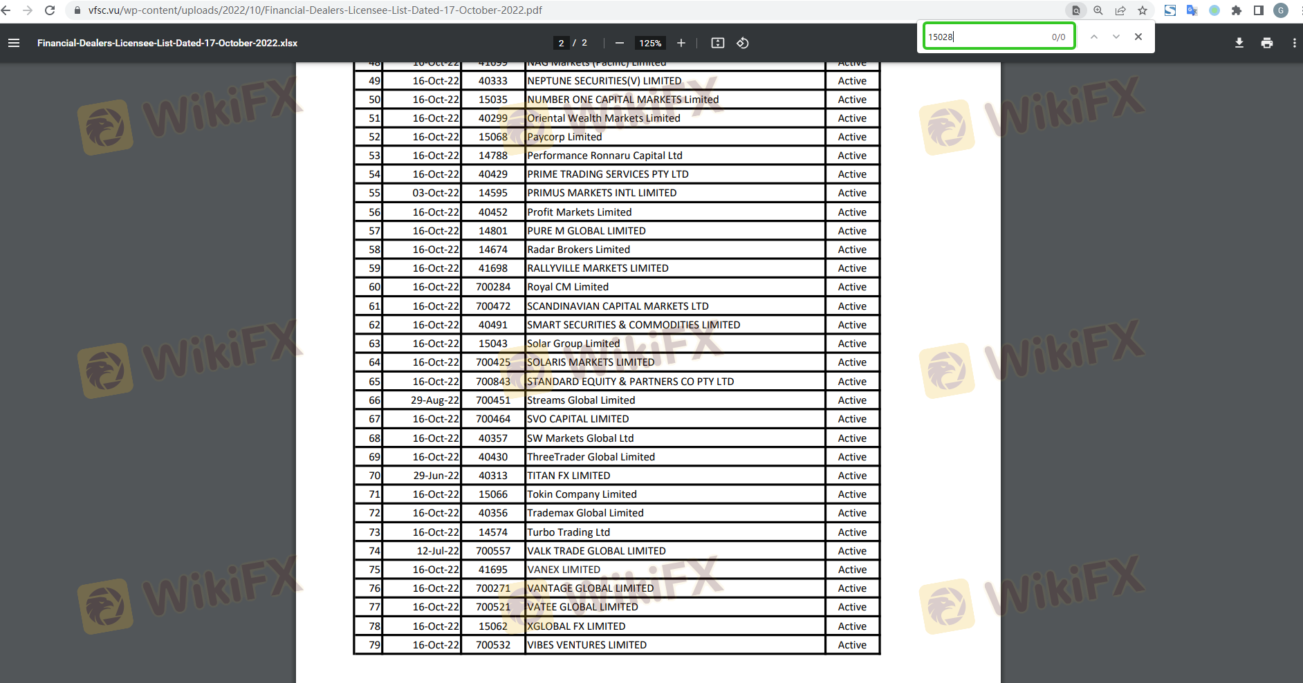 | Vanuatu Financial Services Commission | 15028 | Vanuatu | Revoked |