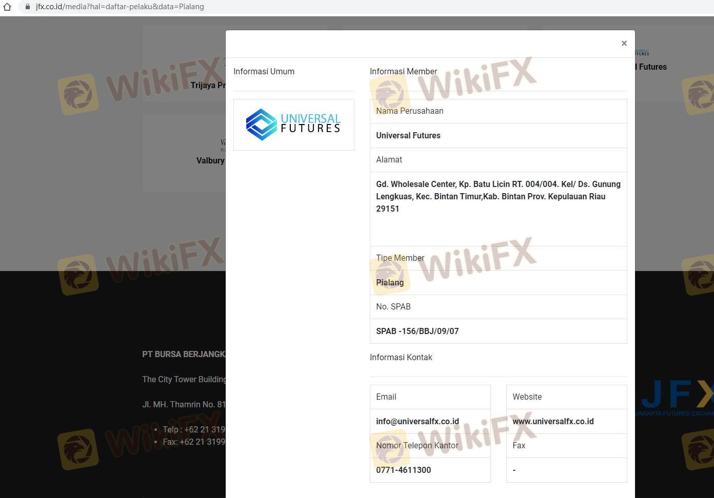 Regarding the legitimacy of Universal Futures forex brokers, it provides BAPPEBTI, JFX and WikiBit, .