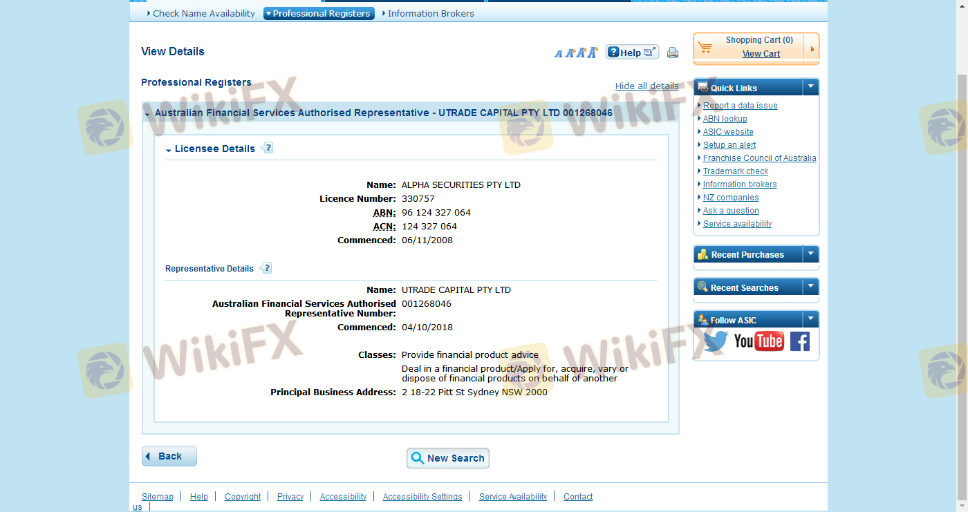The regulatory status of a broker is one of the most critical factors in determining its safety. Utrade claims to be regulated by various authorities, but this assertion is met with skepticism. The lack of a license from a top-tier regulatory body raises red flags. Below is a summary of Utrade's regulatory information: