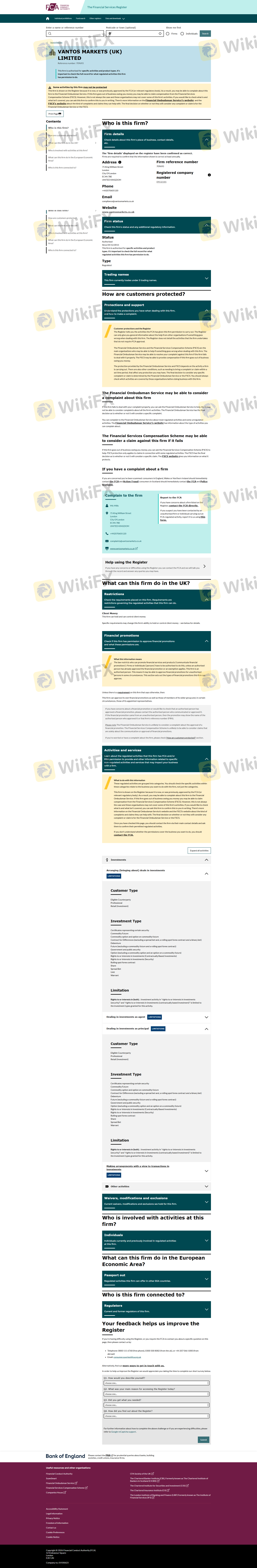 compliance@vantosmarkets.co.uk, complaints@vantosmarkets.co.ukSharing Status: