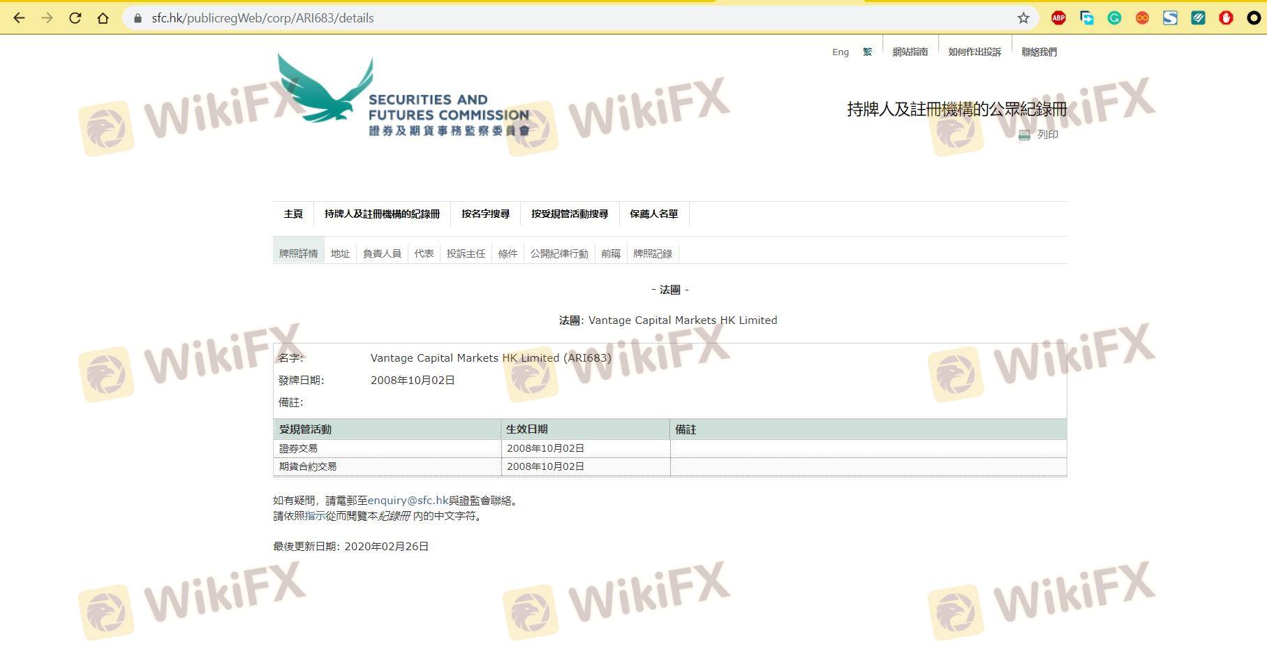 Regarding the legitimacy of Vantage Capital Markets forex brokers, it provides SFC, FCA and WikiBit, (also has a graphic survey regarding security).
