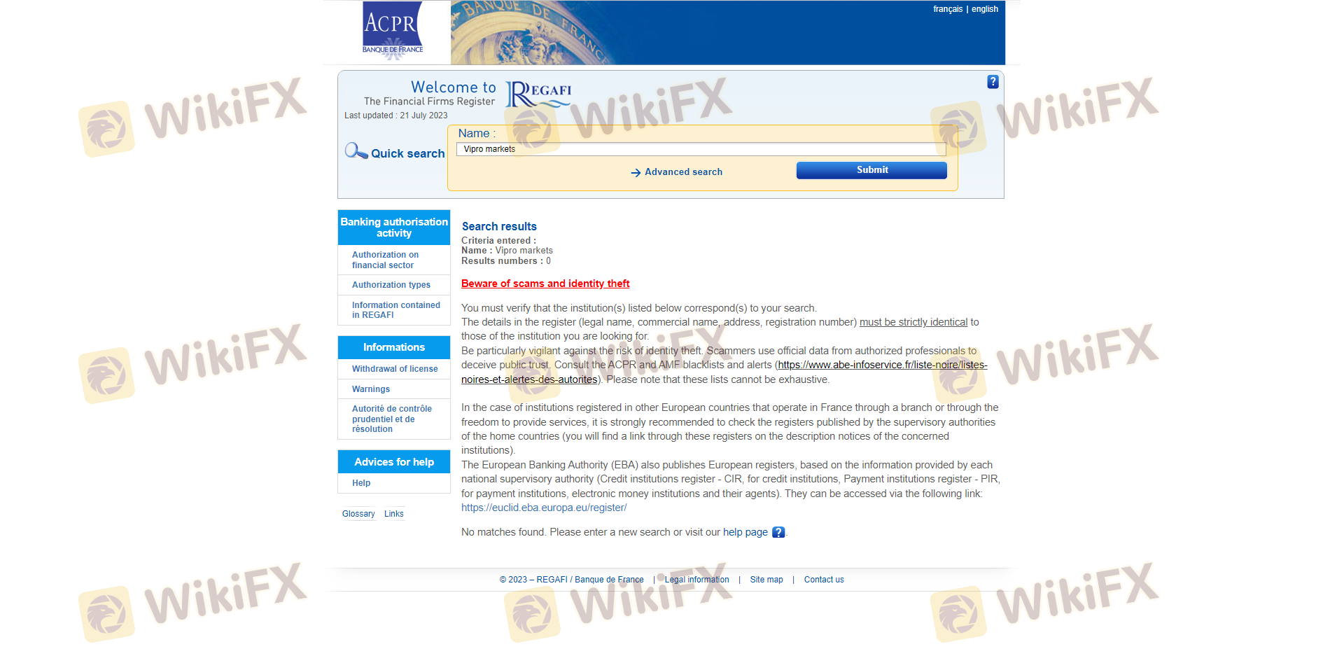 The regulatory framework surrounding a brokerage is a fundamental aspect of its credibility. Vipro Markets is regulated by several reputable authorities, including the Cyprus Securities and Exchange Commission (CySEC) and the Financial Conduct Authority (FCA) in the UK. These regulatory bodies impose strict compliance requirements to ensure the safety and security of client funds. Below is a table summarizing Vipro's regulatory status: