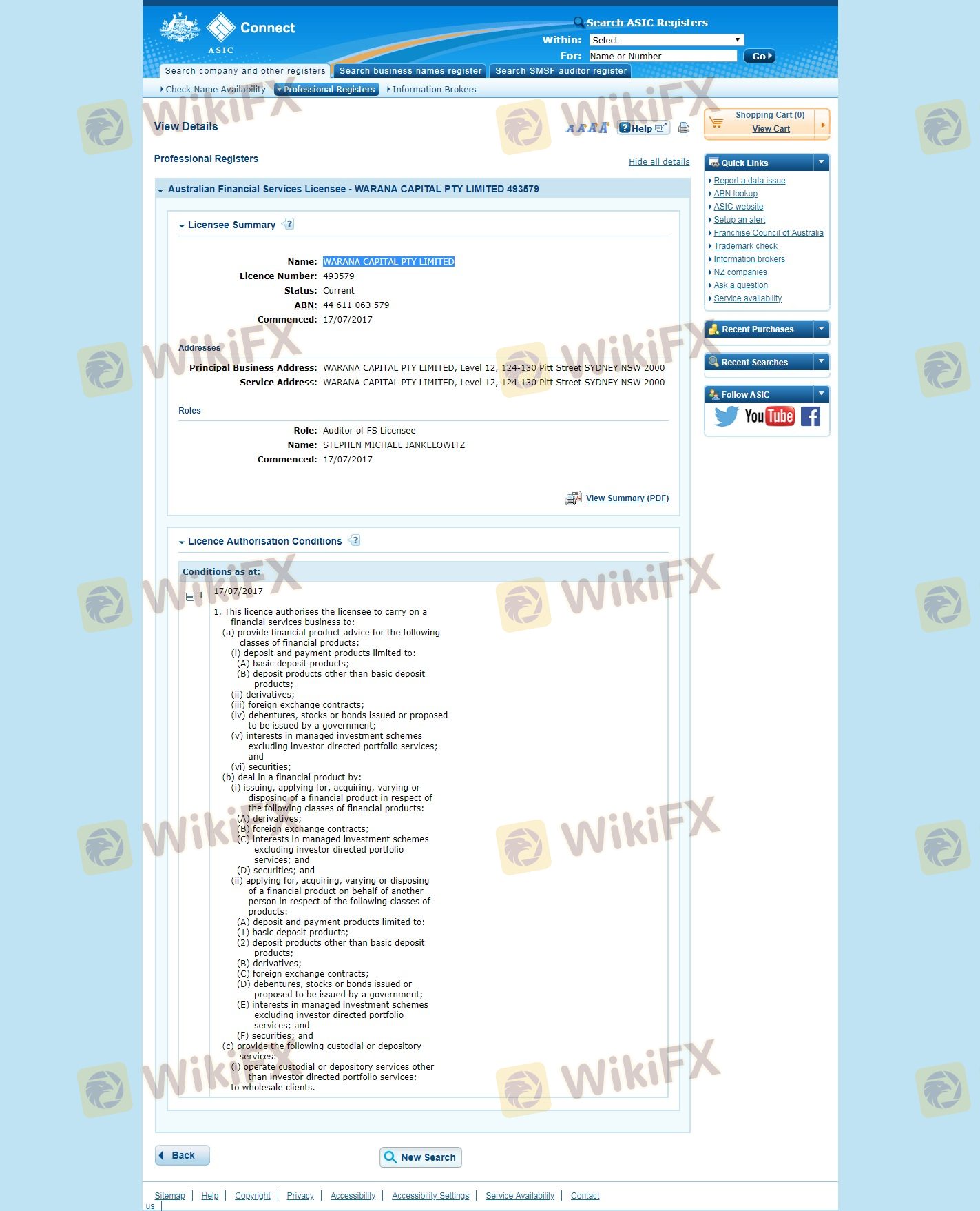 The regulatory environment plays a vital role in determining the safety of a forex broker. Warana Capital claims to be regulated by the Australian Securities and Investments Commission (ASIC), which is known for its strict oversight of financial institutions. However, scrutiny of Warana's regulatory status reveals some concerning aspects.