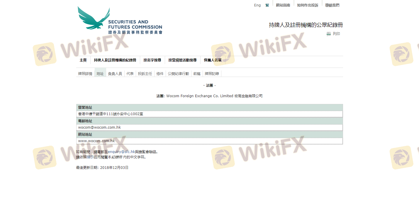 Regarding the legitimacy of WOCOM forex brokers, it provides SFC, SFC and WikiBit, (also has a graphic survey regarding security).