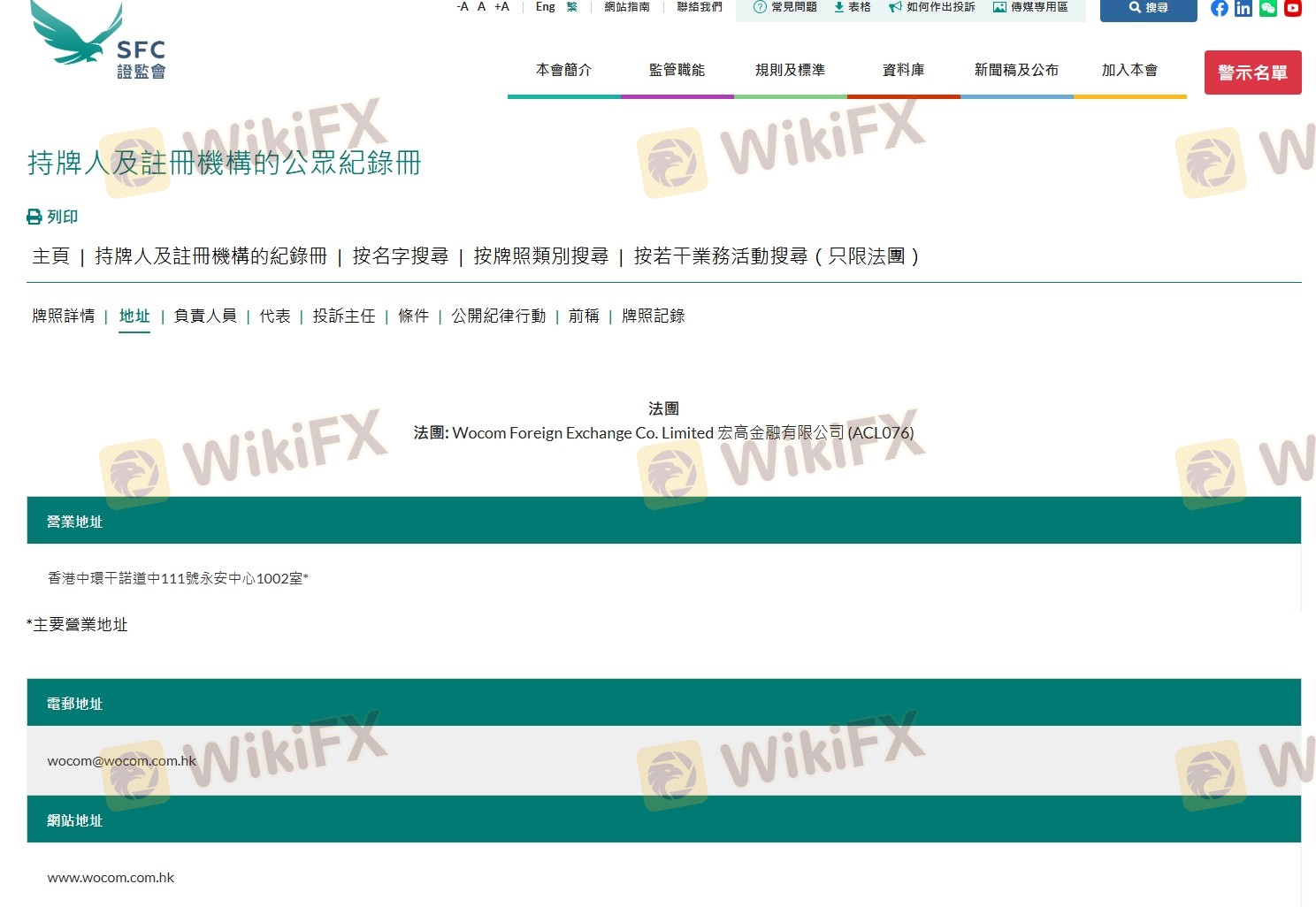 The regulatory environment plays a crucial role in determining the safety and legitimacy of a trading platform. Wocom claims to be regulated by the Securities and Futures Commission (SFC) of Hong Kong, which is known for its stringent oversight of financial markets. Regulatory compliance is essential as it provides a framework for investor protection and ensures that brokers adhere to established financial standards.