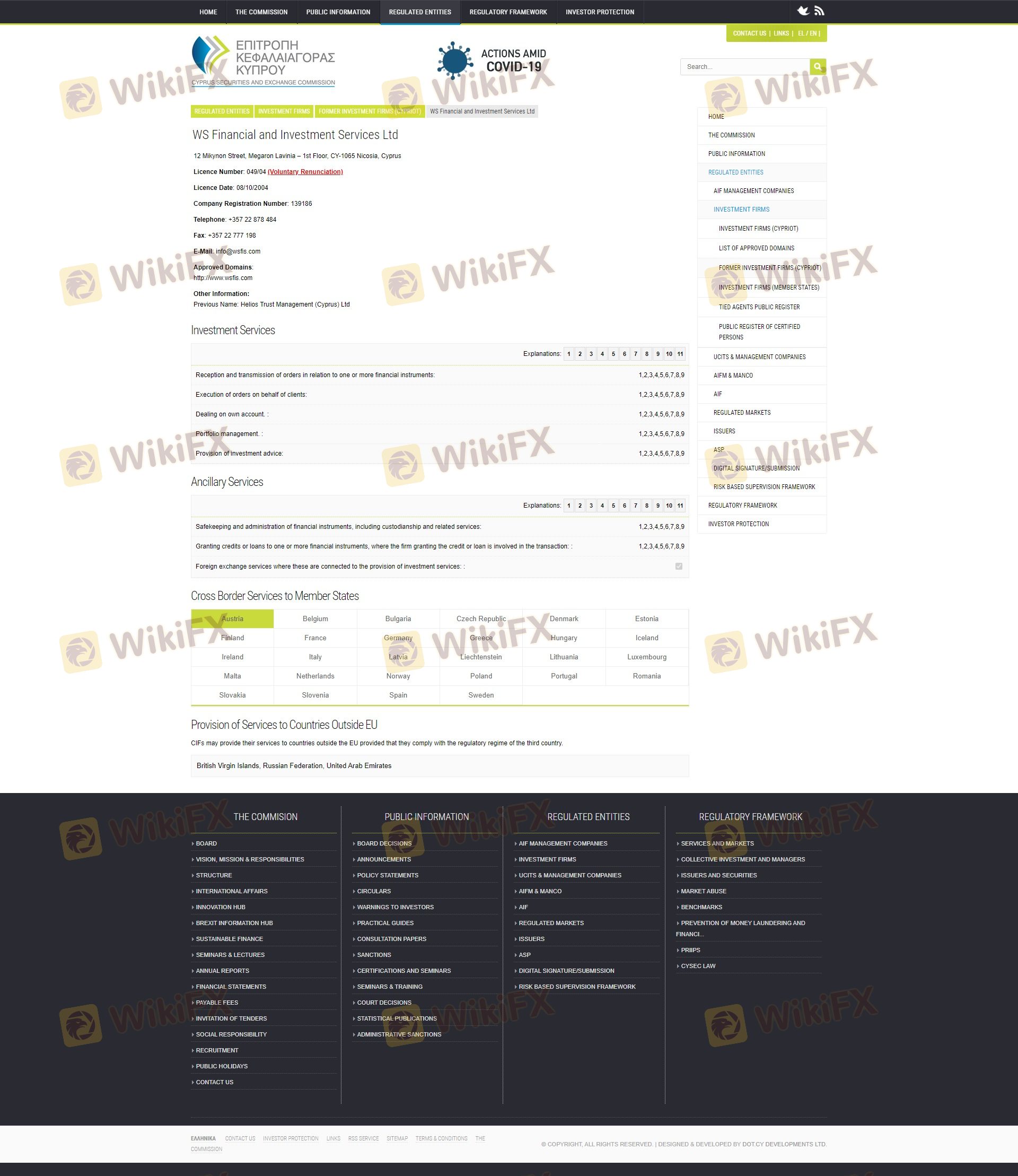WSFIS, or WS Financial and Investment Services Ltd, is a forex broker based in Nicosia, Cyprus. Established in 2003, it has offered a variety of investment services, including portfolio management and foreign exchange trading. As the forex market continues to grow, traders must exercise caution when selecting a broker, as the potential for scams and unreliable firms remains high. This article aims to provide a comprehensive evaluation of WSFIS, examining its regulatory status, company background, trading conditions, customer safety, and user experiences. Our investigation is based on a review of multiple sources, including regulatory filings, user reviews, and industry reports.