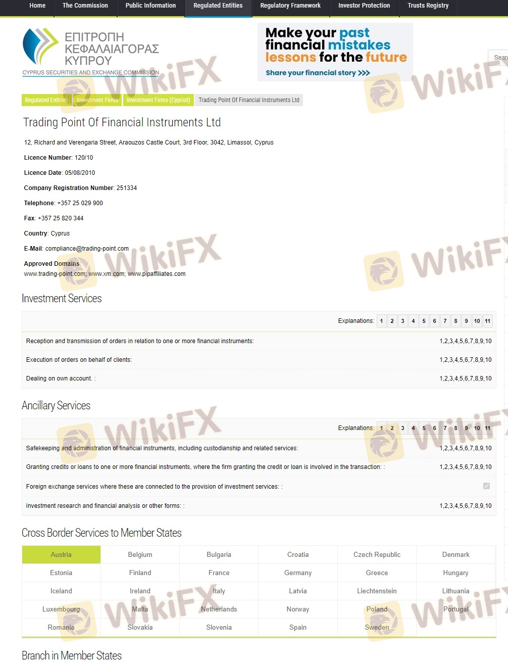 The regulatory framework governing a broker is a fundamental factor in assessing its safety and reliability. XM operates under several regulatory authorities, which enhances its legitimacy and provides traders with a level of protection. Below is a summary of XM's regulatory information: