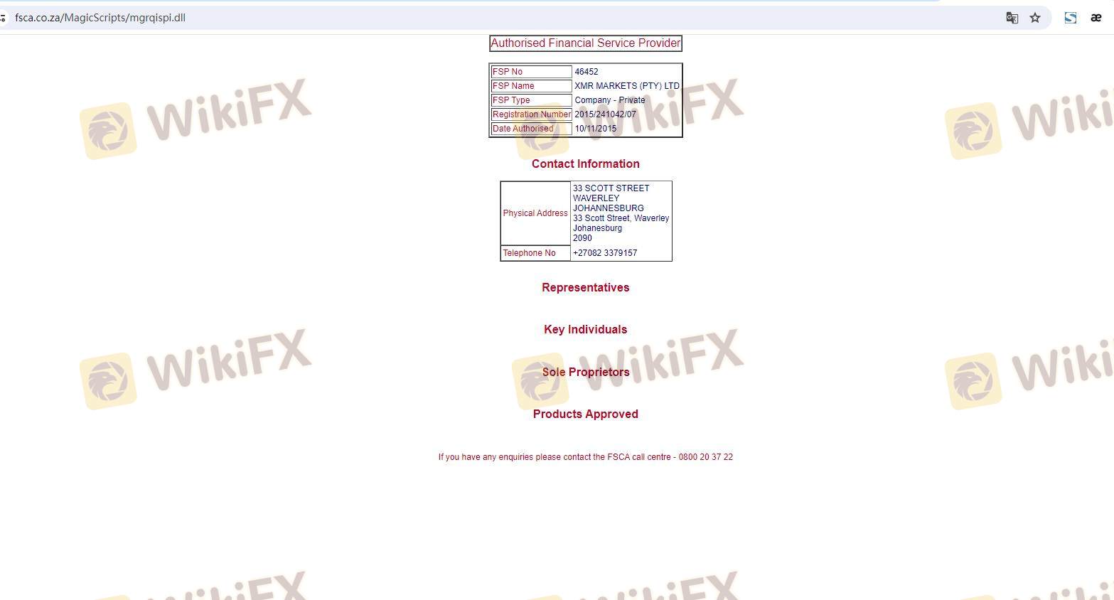 Regarding the legitimacy of XMR MARKETS forex brokers, it provides FSCA and WikiBit, .