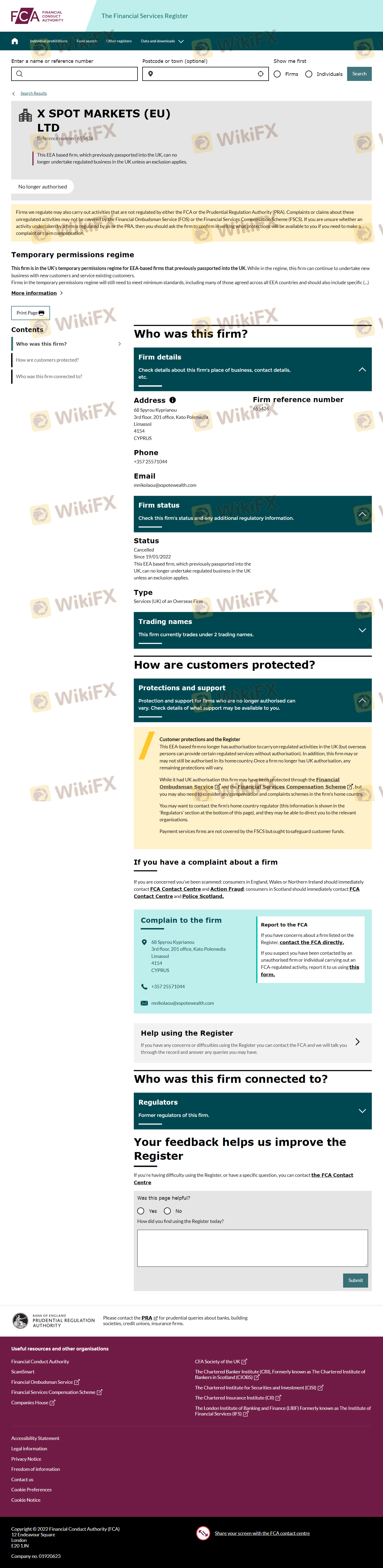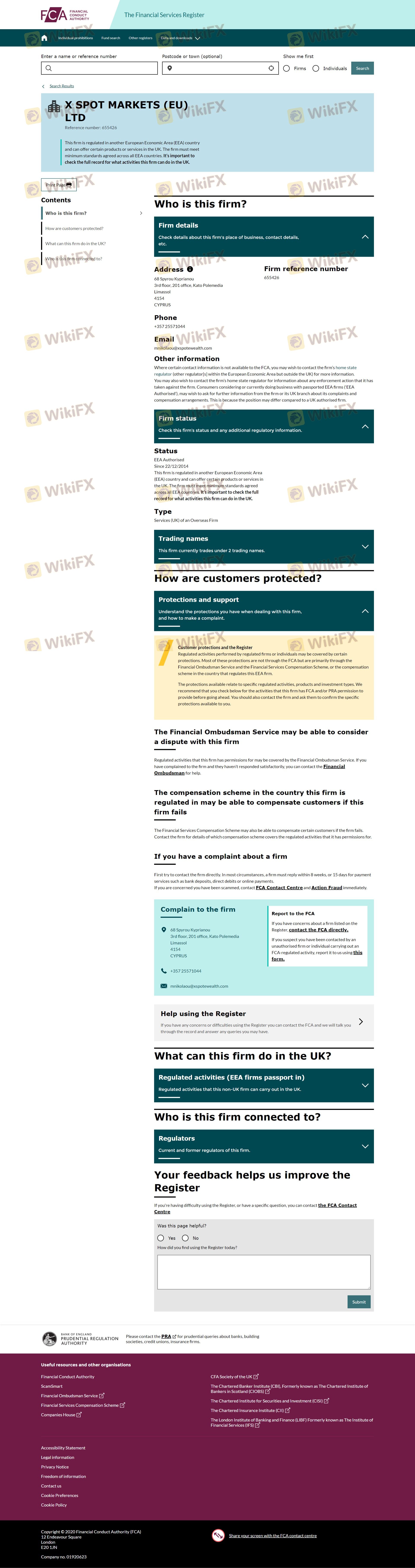 XSpot Wealth (EU) Ltd. has its headquarters in Limassol, Cyprus. The company has been operational for nearly a decade, but its ownership structure and management team remain relatively obscure. The lack of transparency regarding management raises concerns about the broker's accountability and governance.
