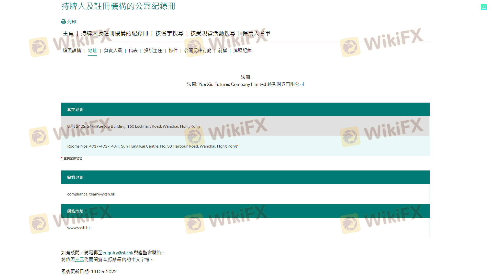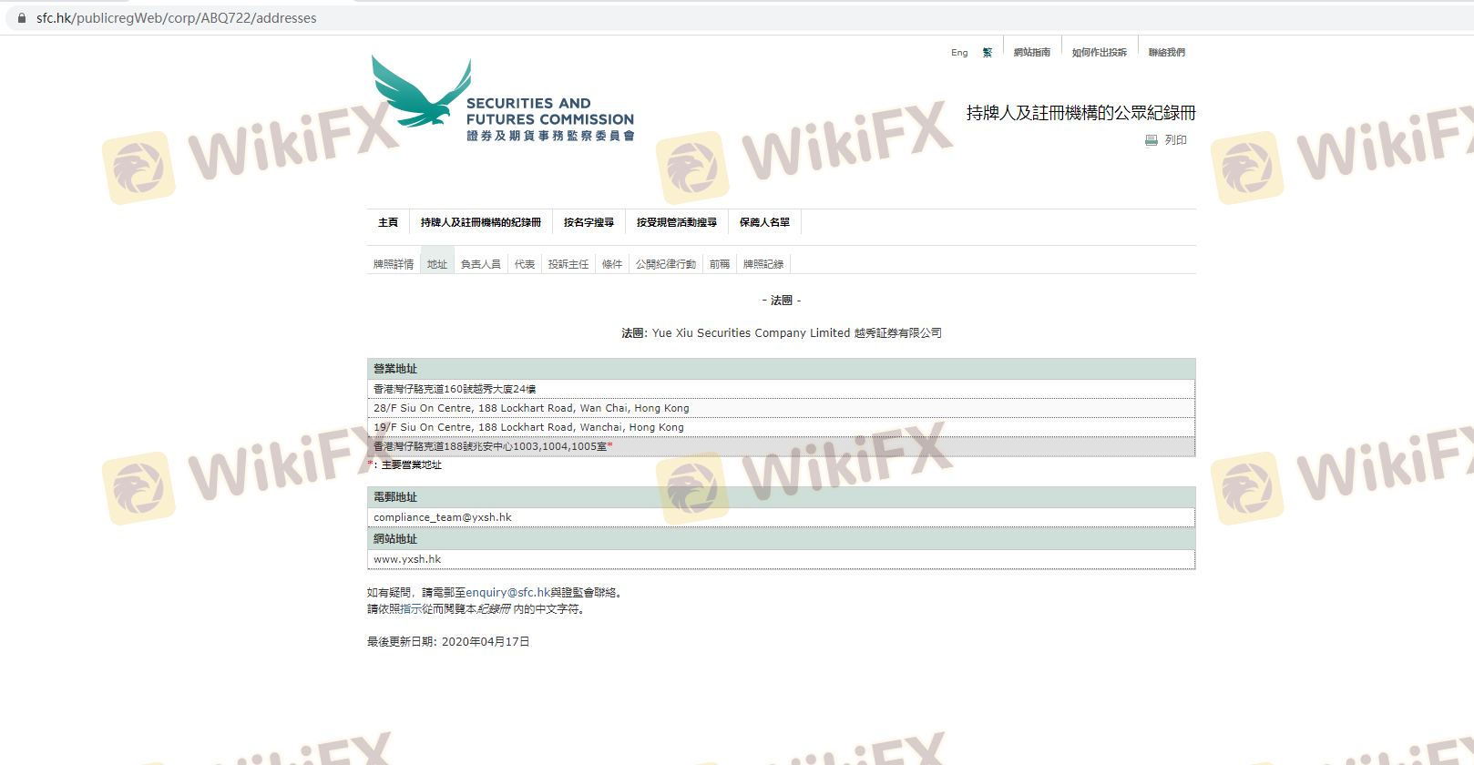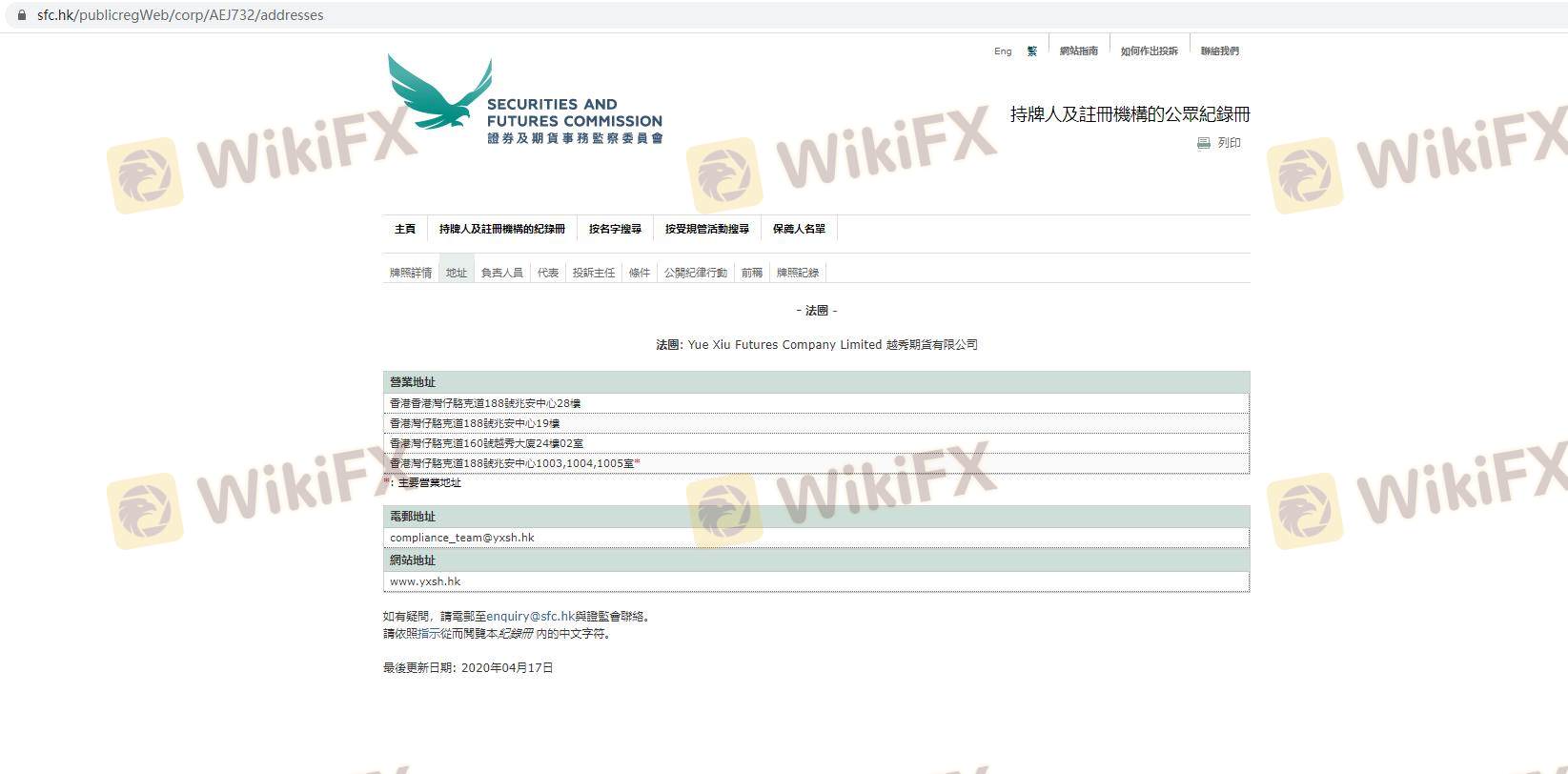 Regarding the legitimacy of YUEXIU SECURITIES forex brokers, it provides SFC, SFC and WikiBit, (also has a graphic survey regarding security).