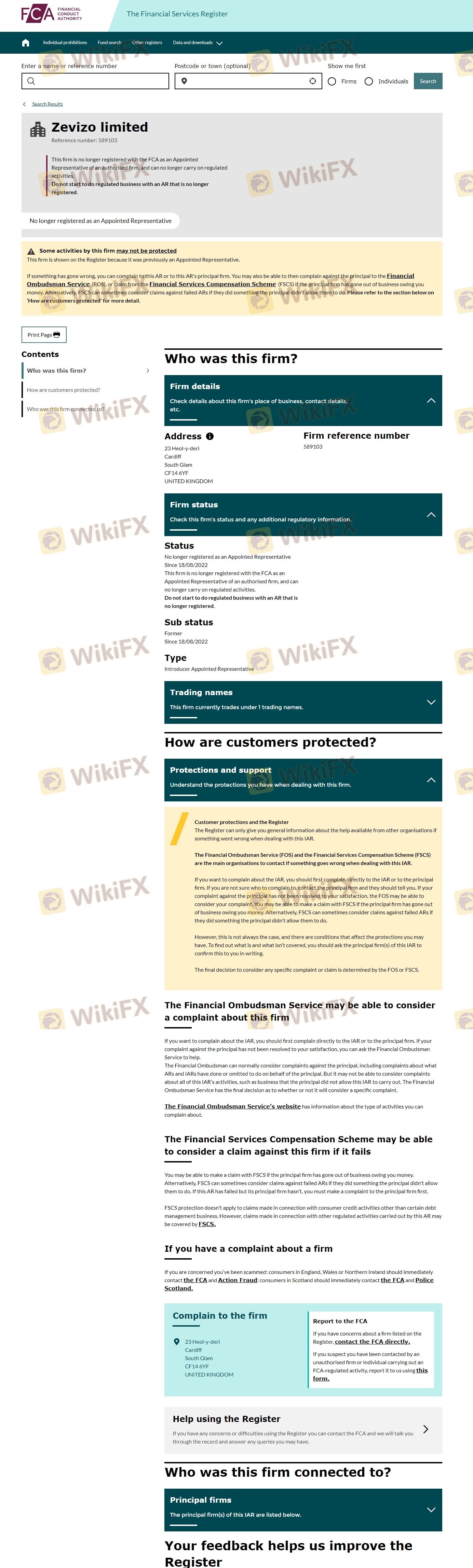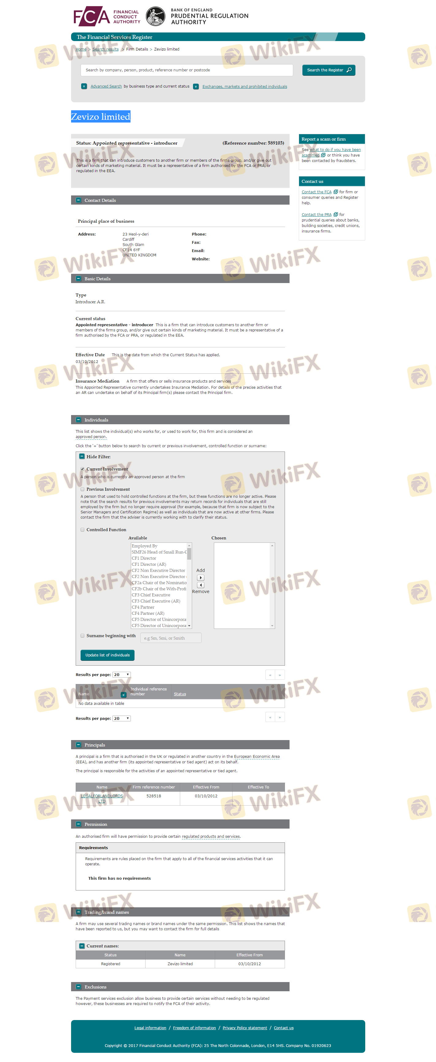 Regarding the legitimacy of ZEVIZO forex brokers, it provides FCA and WikiBit, .