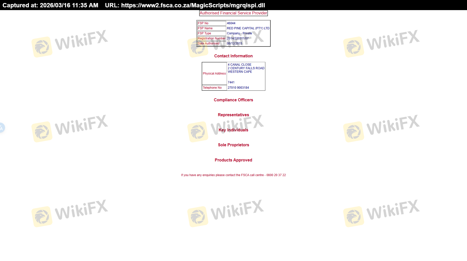 | FSCA | Not provided | South Africa | Unverified |