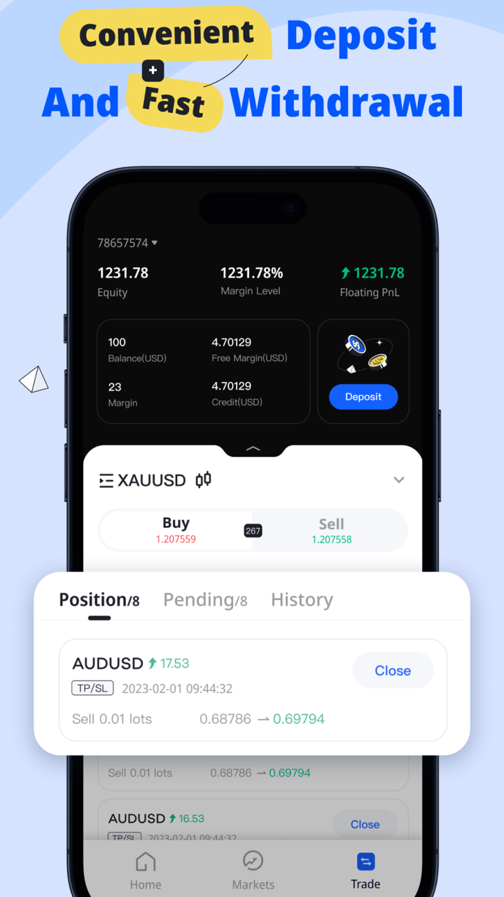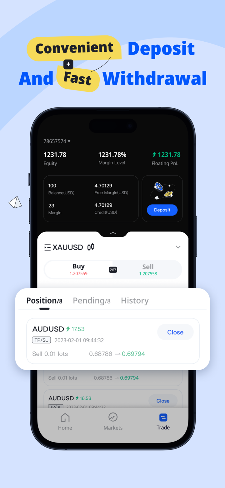 - Múltiples Métodos de Financiación: Deposite y retire fondos a través de varios métodos dentro de la aplicación.