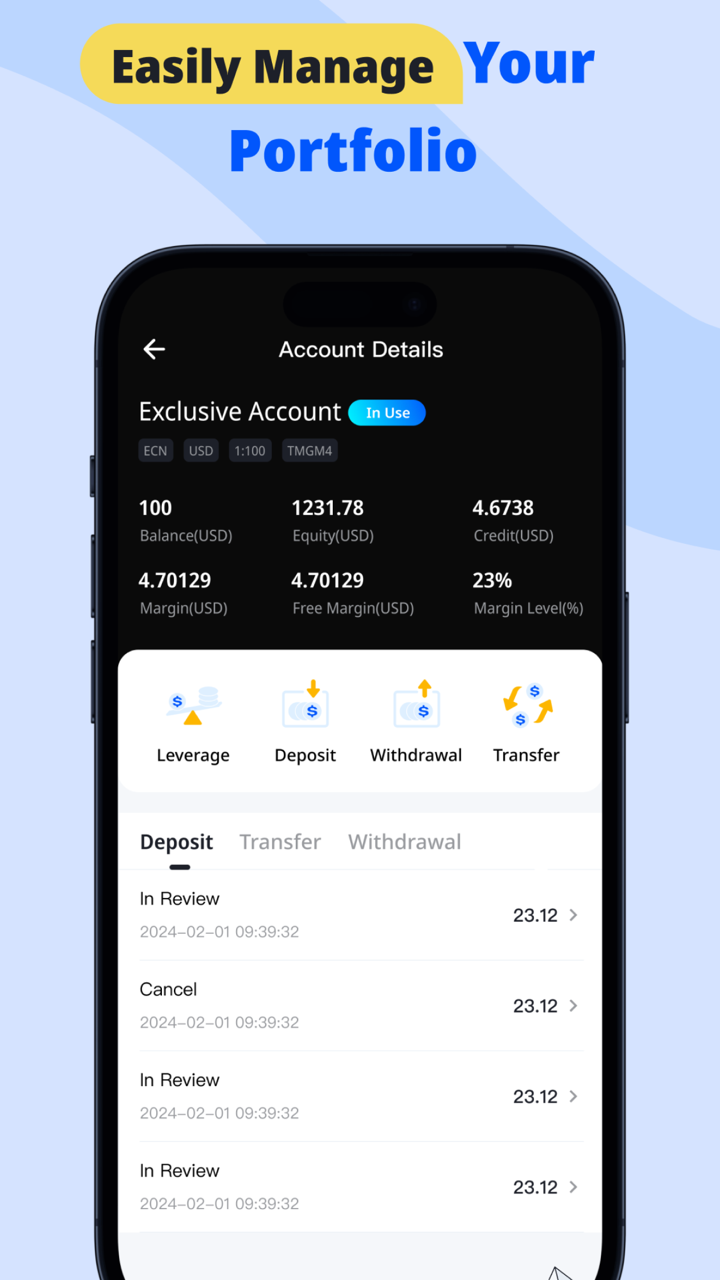 - Características de Gestión de Riesgos: Establezca órdenes de stop-loss y take-profit directamente dentro de la aplicación.