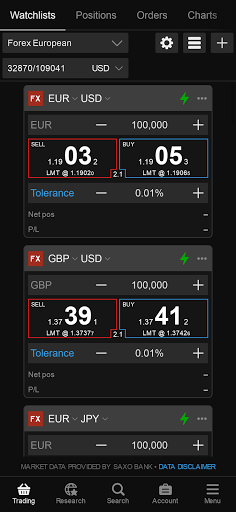 Aplicación del bróker de trading Forex elana Global Trader