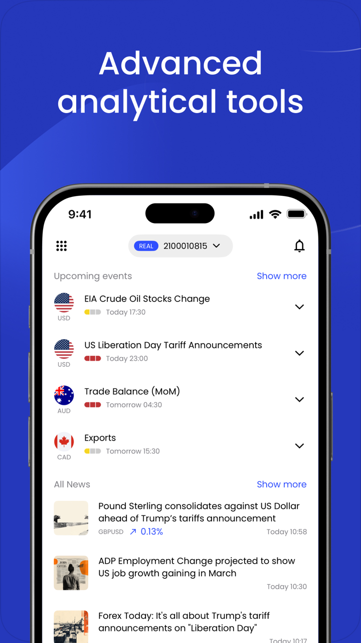 Mantente informado con las funciones de noticias del mercado en tiempo real y análisis disponibles dentro de la aplicación para mejorar tus estrategias de trading.