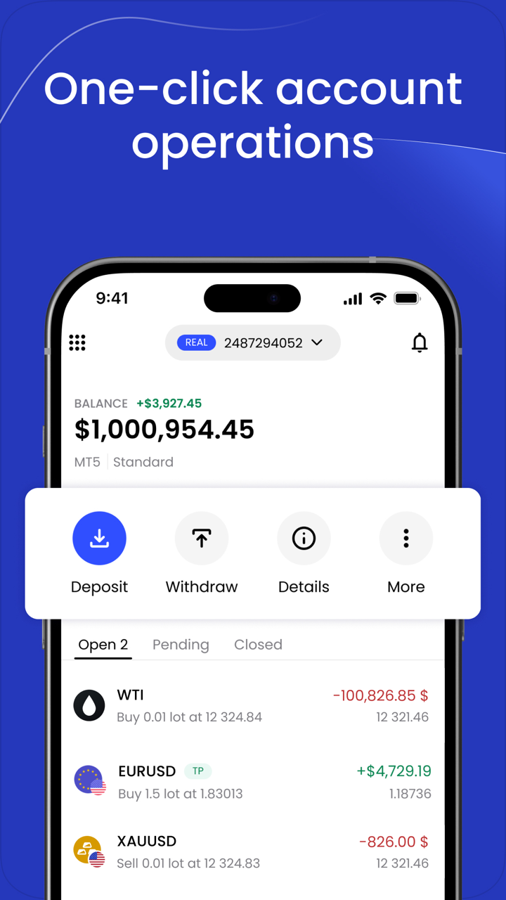 - Notificaciones en tiempo real: Mantente actualizado con los movimientos del mercado y las actividades de la cuenta.