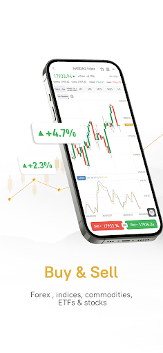 Los activos disponibles en móvil incluyen Forex, criptomonedas, materias primas e índices.