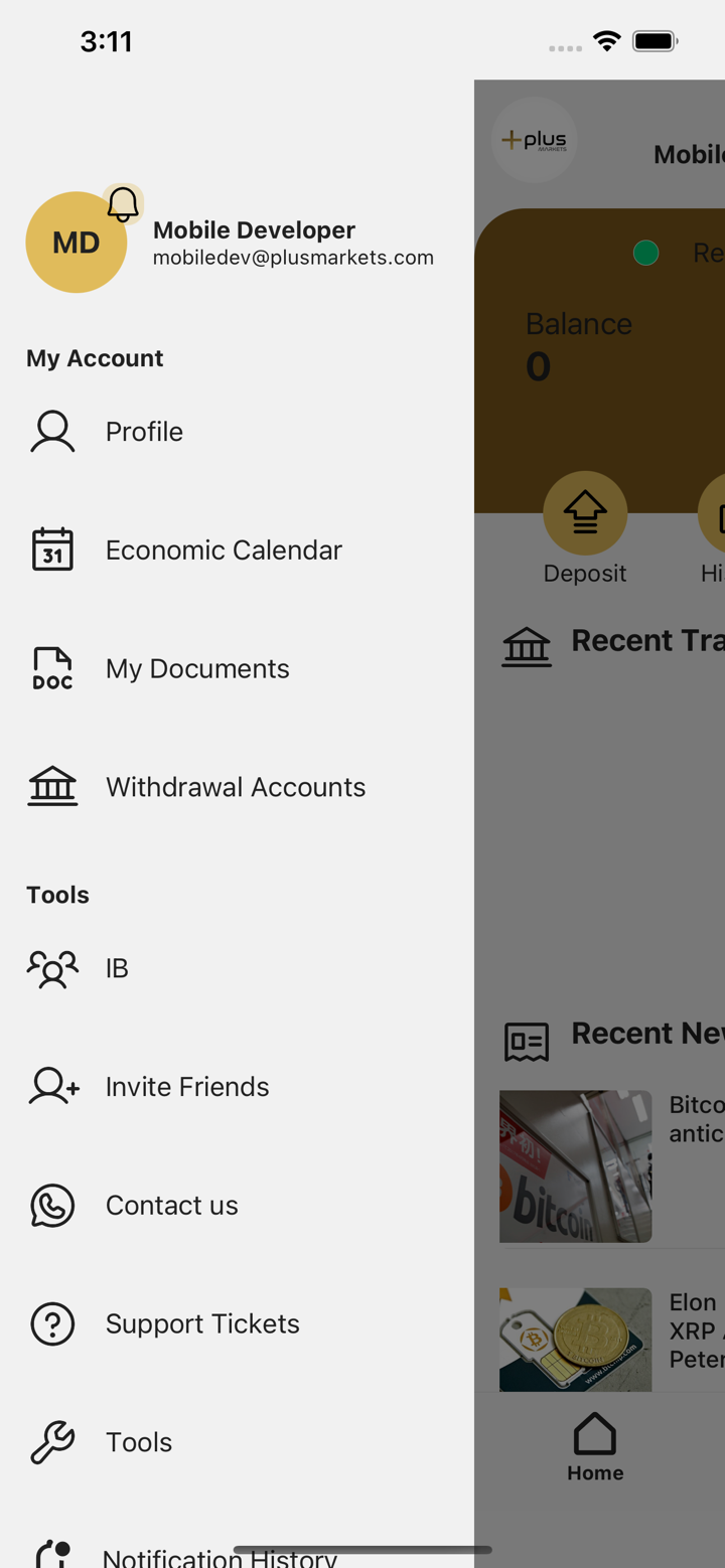 Aplicación del bróker de trading Forex PLUS MARKETS