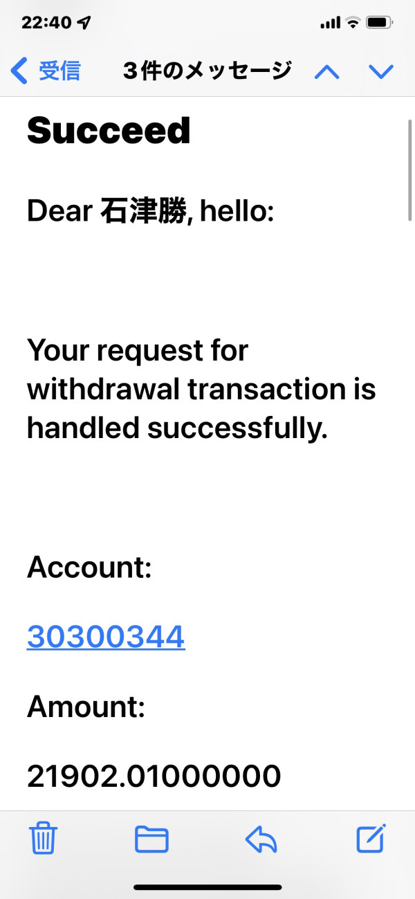 Envié 5,15 millones de yenes adicionales para retirar 2 millones de yenes en dólares estadounidenses.