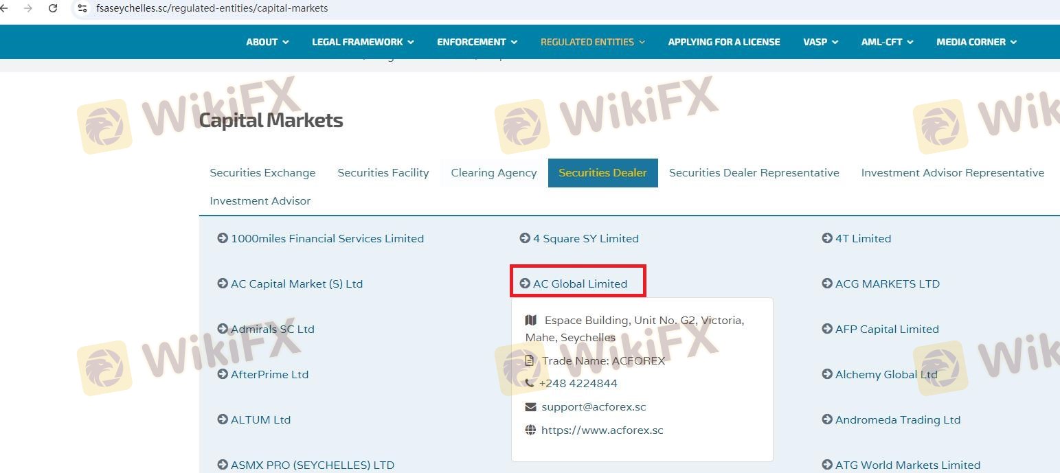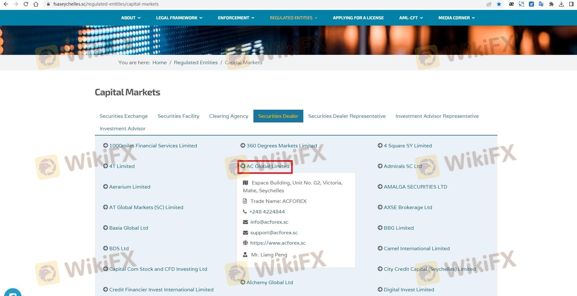 Respecto a la legitimidad del bróker de Forex AC FOREX, proporciona Seychelles FSA y .
