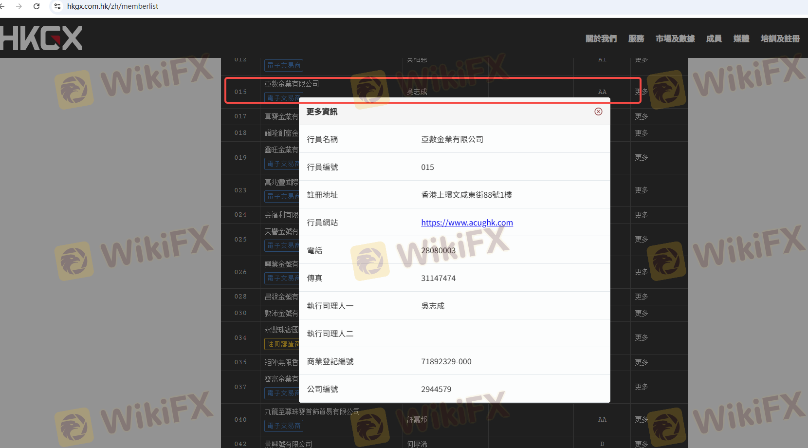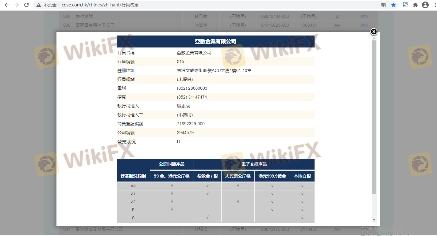 Respecto a la legitimidad del bróker de Forex ACU Bullion Limited, proporciona Hong Kong HKGX y (también cuenta con un estudio gráfico sobre seguridad.).