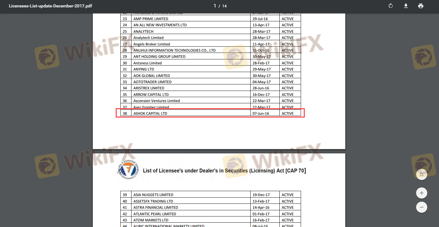 Respecto a la legitimidad del bróker de Forex ASHOKFX, proporciona Vanuatu VFSC y .