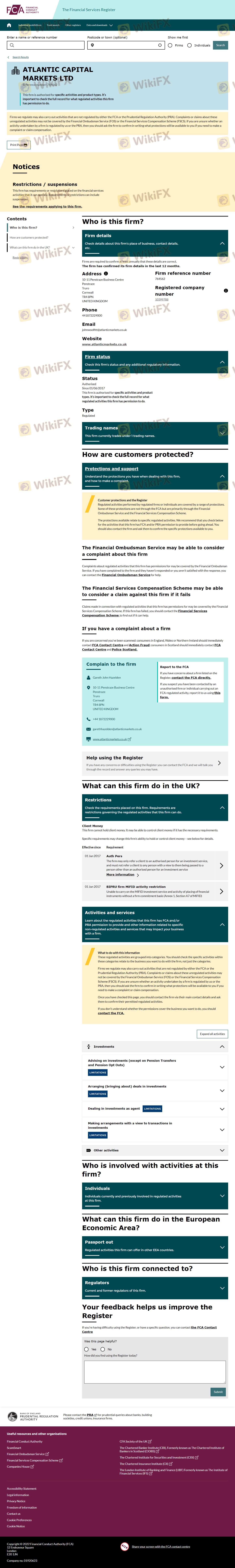 Respecto a la legitimidad del bróker de Forex Atlantic Capital Markets, proporciona Reino Unido FCA y .