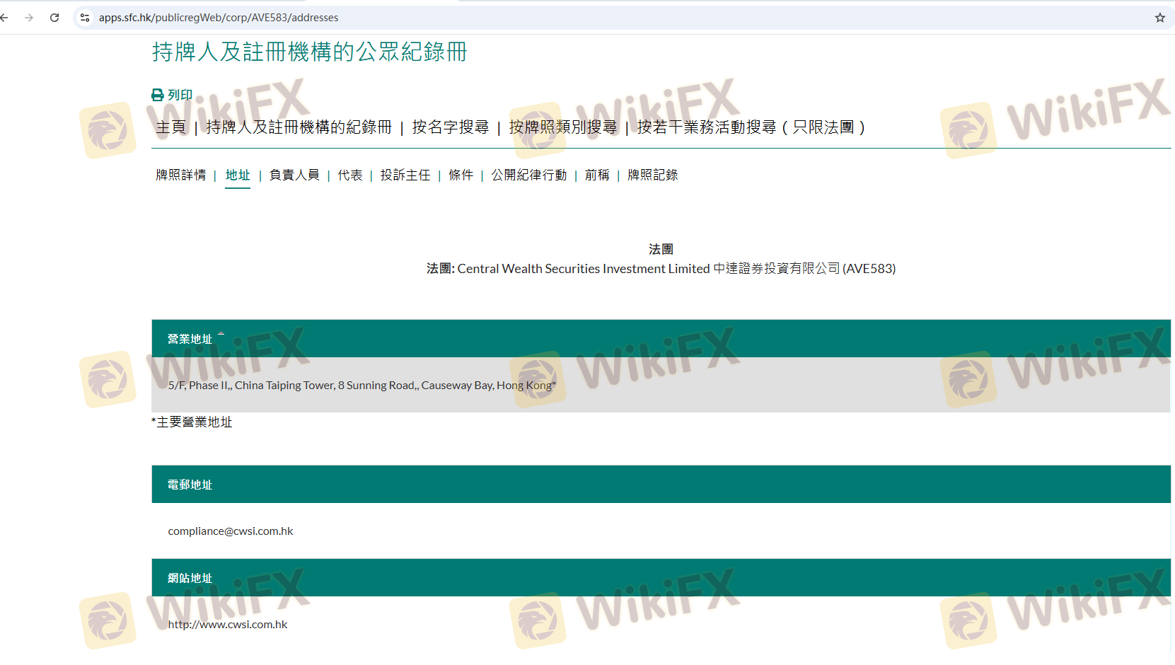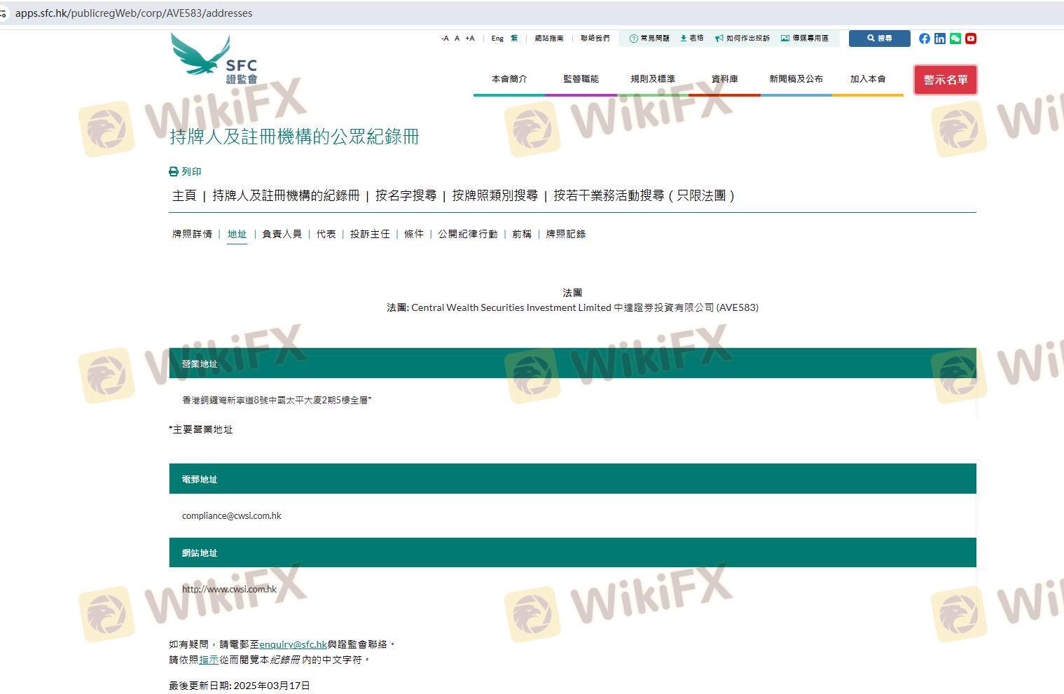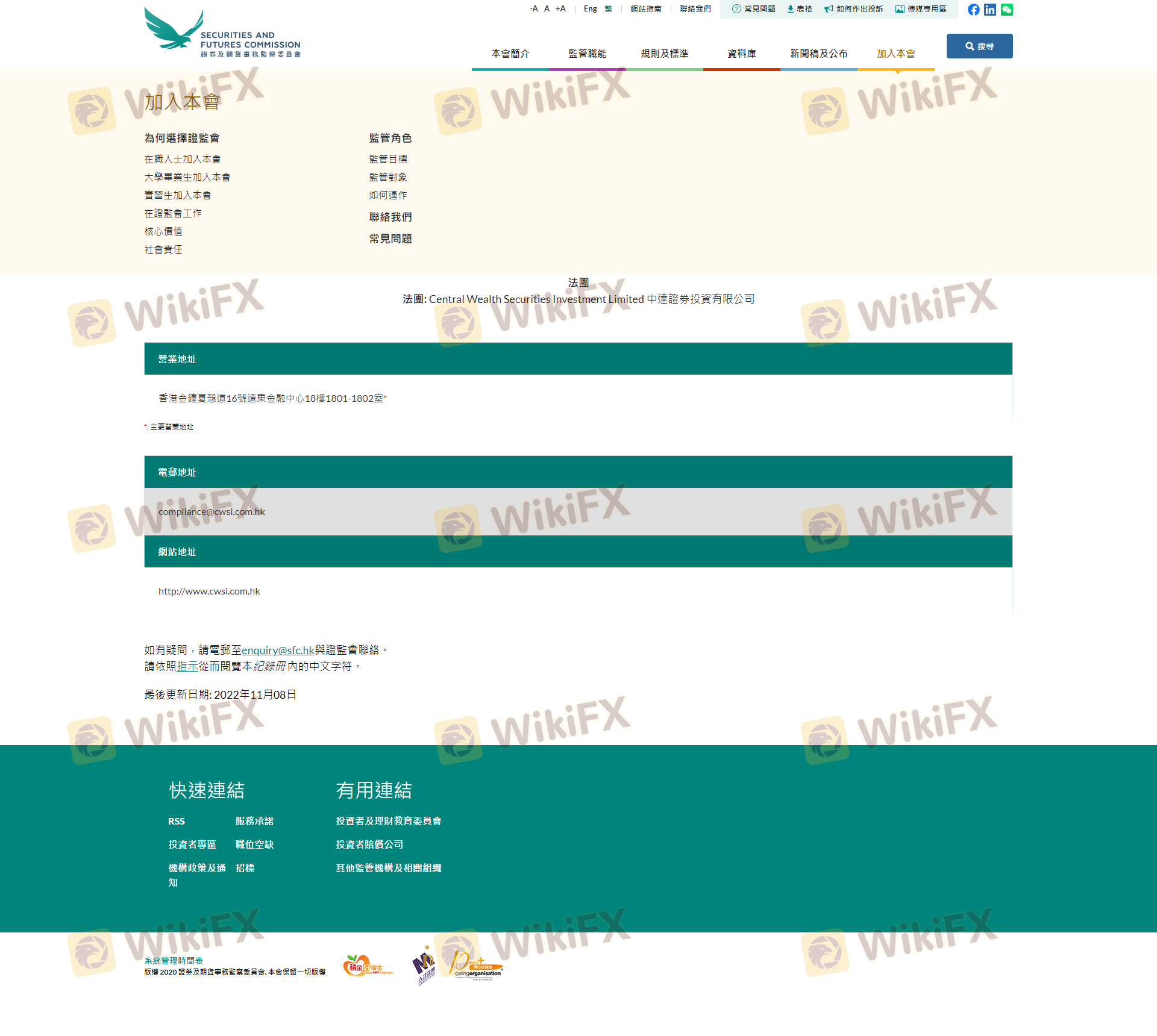 Respecto a la legitimidad del bróker de Forex CENTRAL WEALTH SECURITIES INVESTMENT LIMITED, proporciona Hong Kong SFC, Hong Kong SFC y (también cuenta con un estudio gráfico sobre seguridad.).