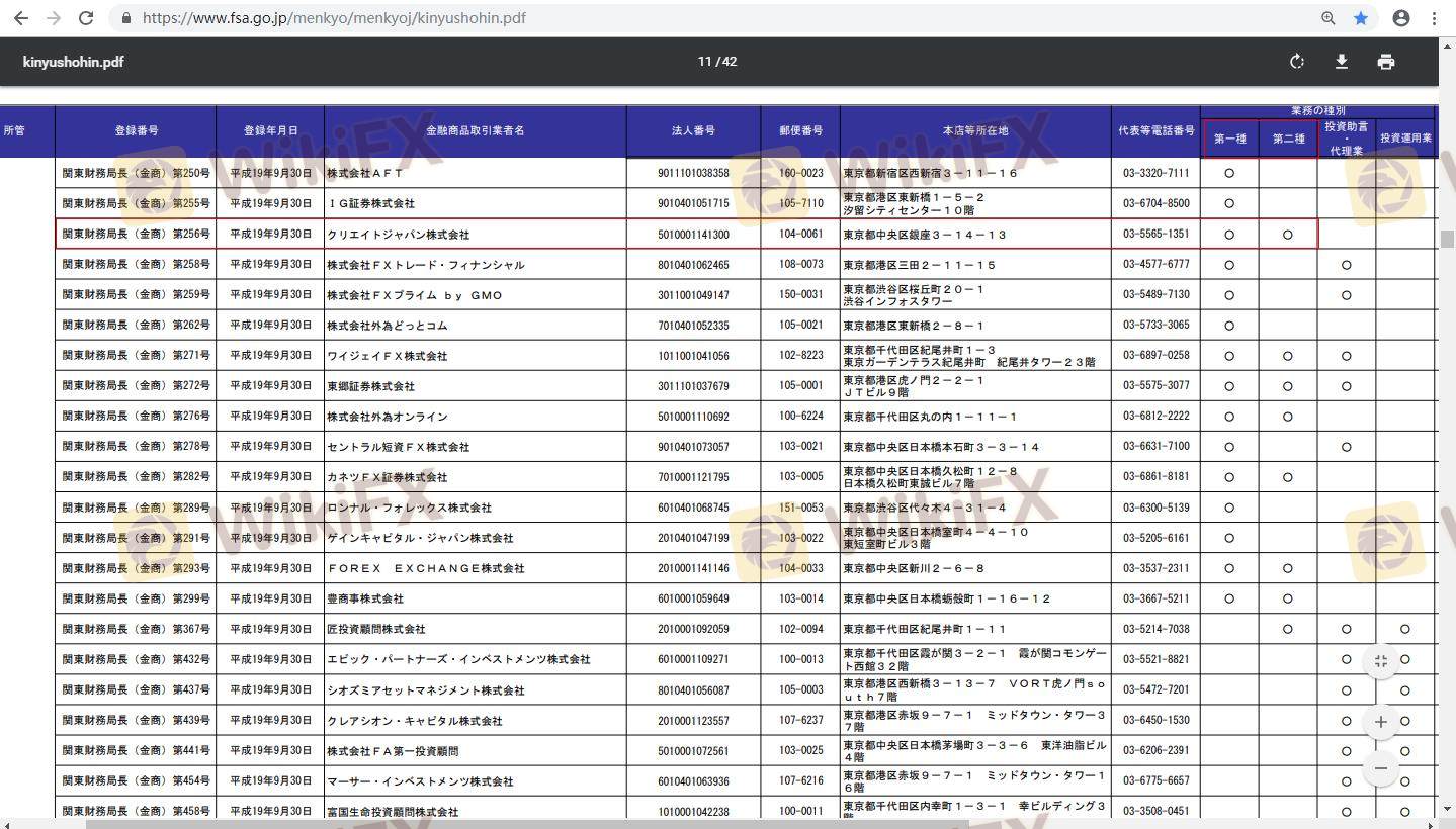 Respecto a la legitimidad del bróker de Forex Createjapan, proporciona Japón FSA y (también cuenta con un estudio gráfico sobre seguridad.).