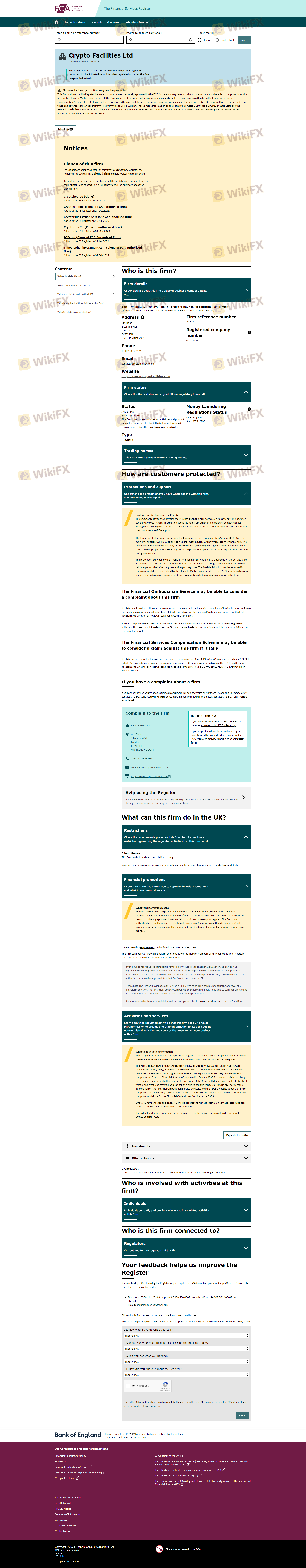 Respecto a la legitimidad del bróker de Forex Crypto Zone 24, proporciona Reino Unido FCA y (también cuenta con un estudio gráfico sobre seguridad.).