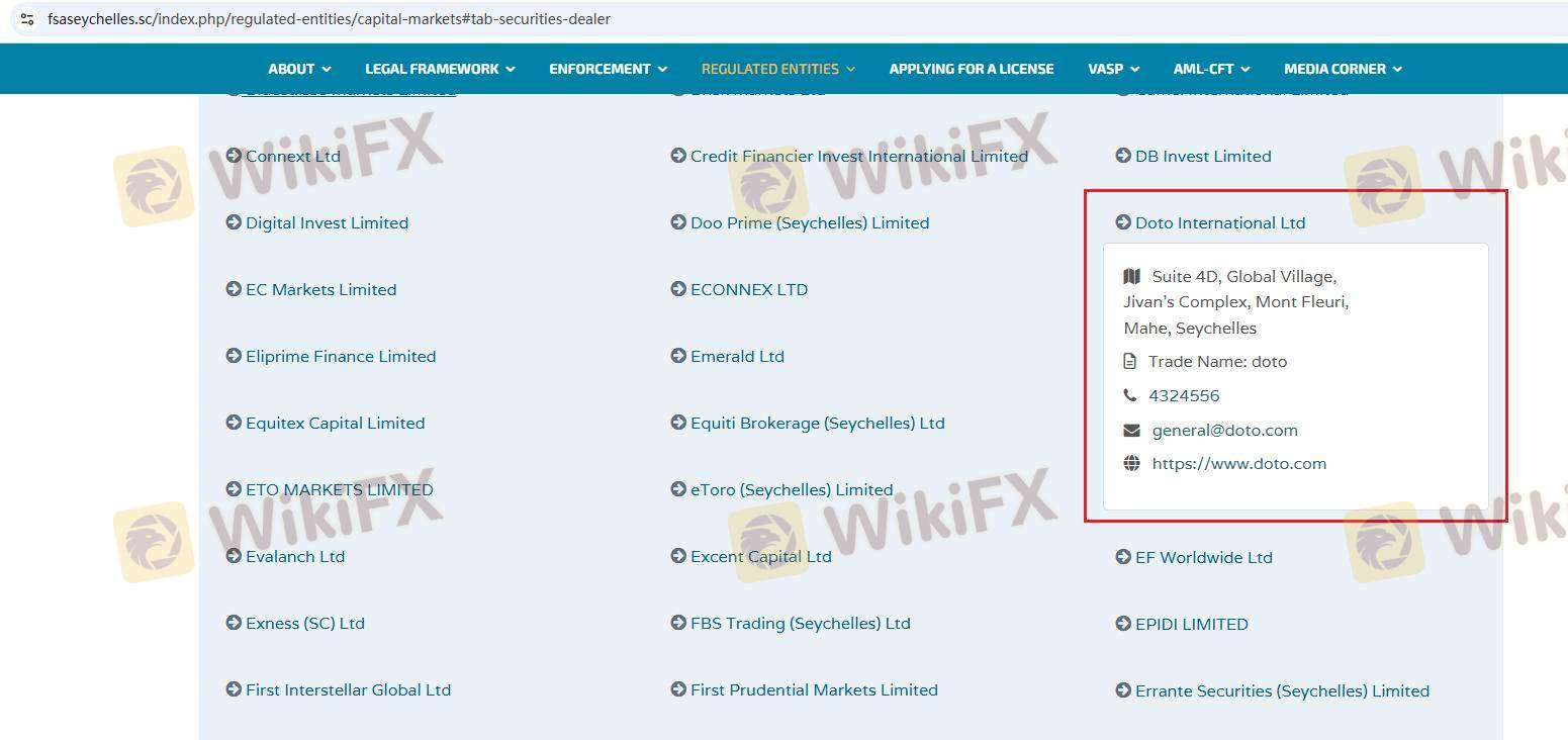 Doto opera bajo la supervisión de varios organismos reguladores financieros, lo cual es un factor crítico para evaluar su legitimidad. La regulación garantiza que los brókers cumplan con estándares específicos diseñados para proteger a los traders. A continuación se presenta un resumen de la información regulatoria de Doto: