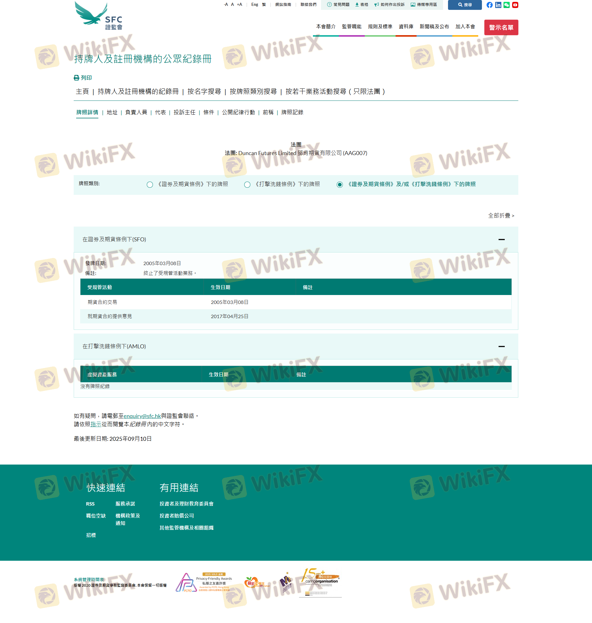 Respecto a la legitimidad del bróker de Forex Duncan Futures Limited, proporciona Hong Kong SFC y .